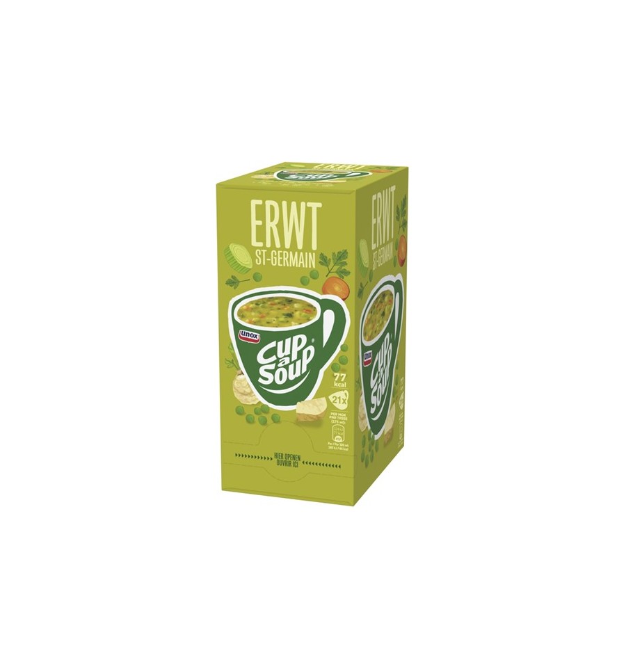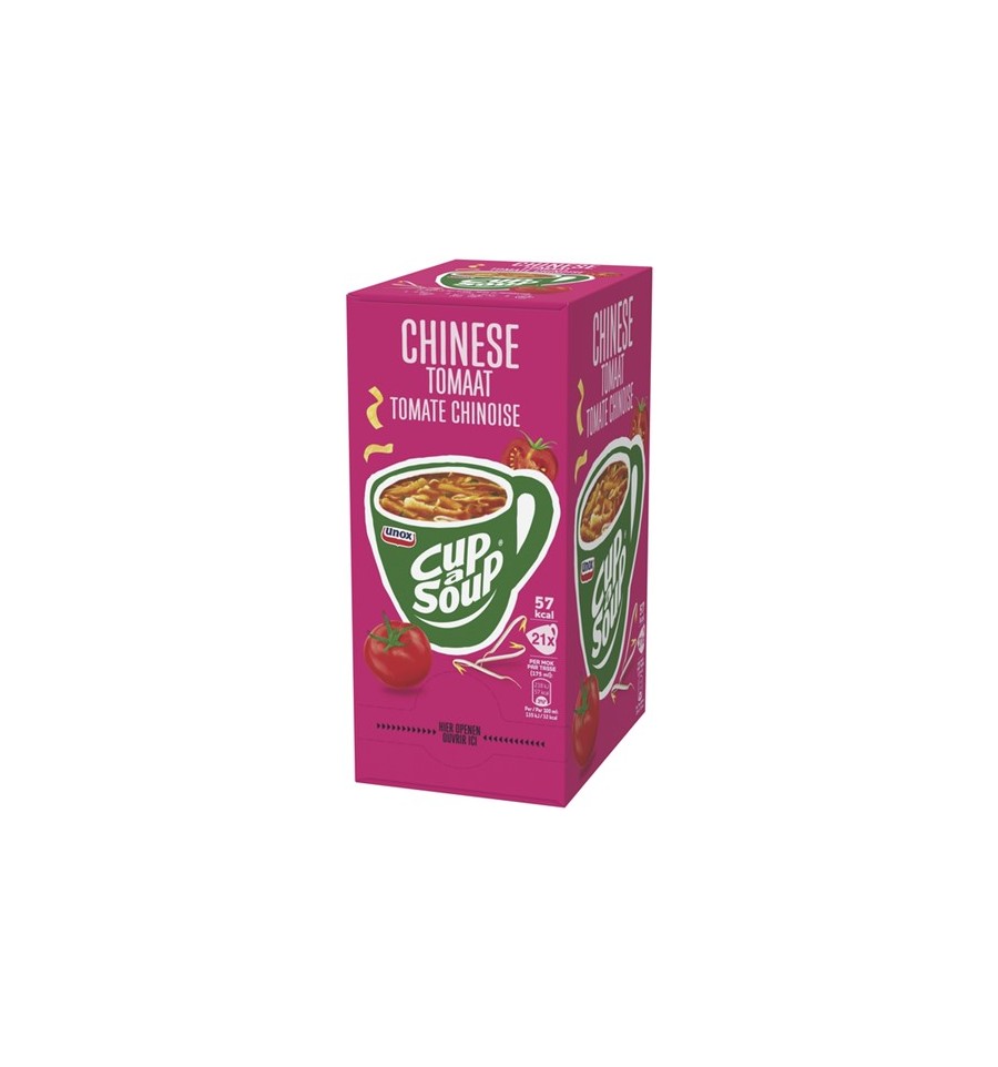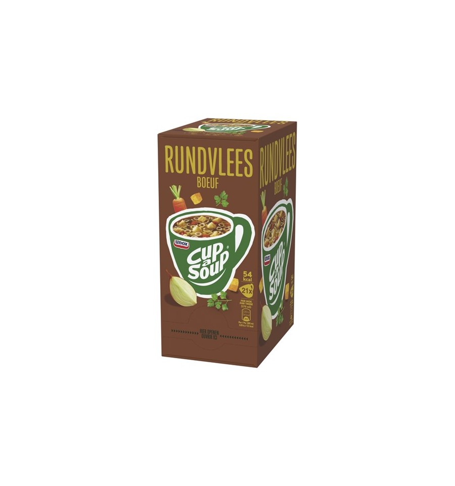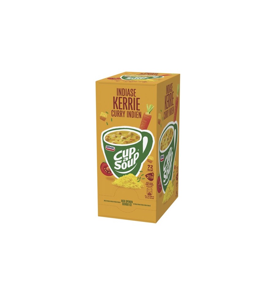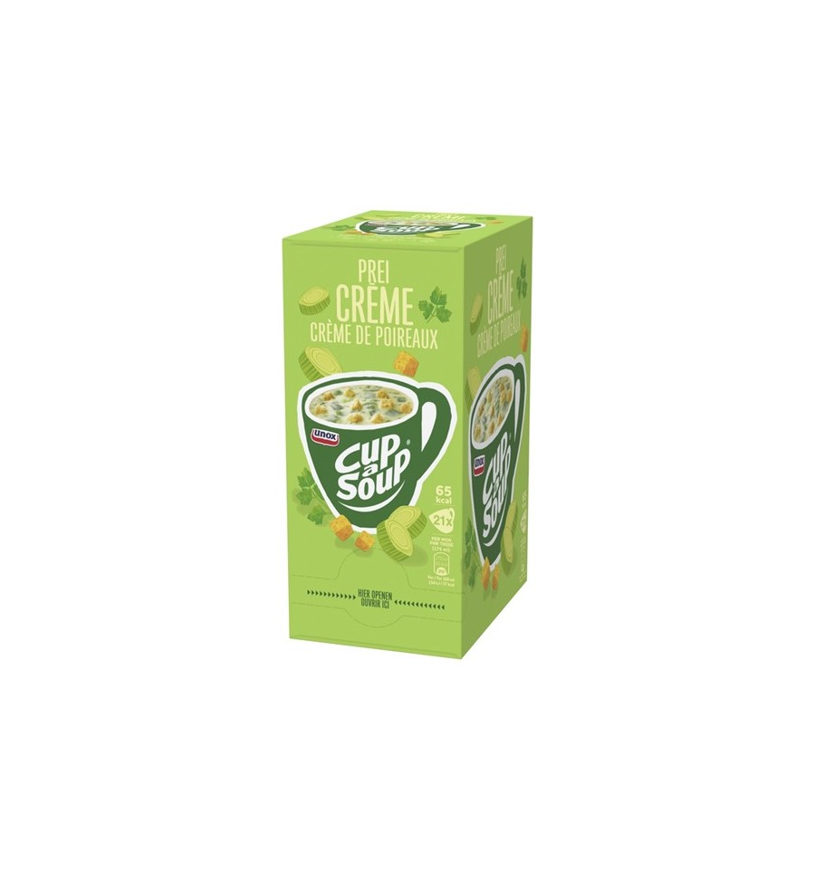 Cup-a-Soup Champignon, verpakking à 21 zakjes van 14,8 gram. Één zakje is voldoende voor een portie van 175 ml.
