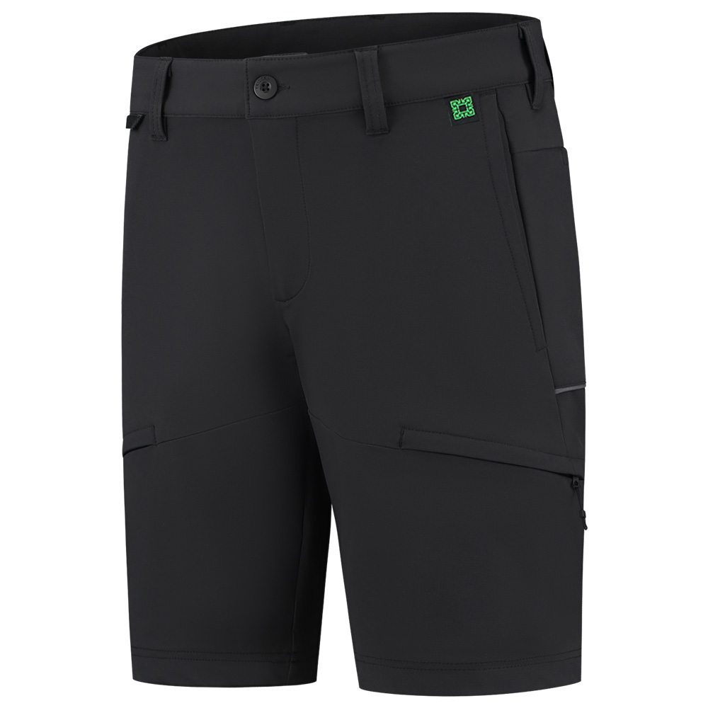 Deze nieuwe duurzame Korte Werkbroek Fitted Stretch RE2050 is het broertje van de lange variant! Gemaakt in een volledige stretchkwaliteit, wat het een uitermate comfortabele en representatieve broek maakt! De Korte Werkbroek Fitted Stretch is onderdeel van het RE2050 kledingpakket: een duurzaam en circulair kledingpakket. Deze werkbroek is gemaakt van 92% recycled nylon en 8% elastaan. Dankzij het gebruik van recyclede grondstoffen is de CO2-uitstoot lager en verbruiken we minder water en energie tijdens de productie dan bij een werkbroek van virgin grondstoffen! Dit item is verkrijgbaar in de kleuren Ink en Black en in de brede maatrange 42-66. De reflective piping op het achterbeen en onder de achterzakken geeft de werkbroek een sportieve en moderne look. Met twee steekzakken en twee open achterzakken biedt de korte werkbroek voldoende opbergmogelijkheden.