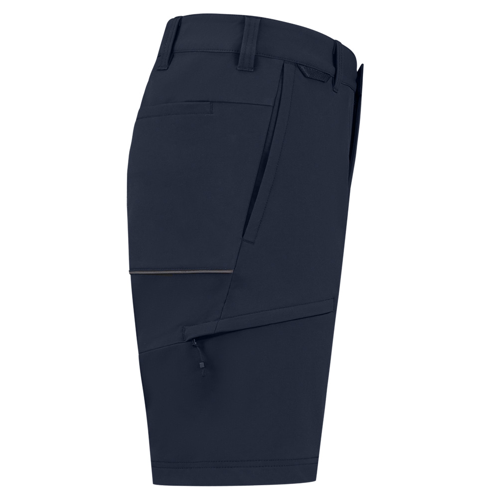 Deze nieuwe duurzame Korte Werkbroek Fitted Stretch RE2050 is het broertje van de lange variant! Gemaakt in een volledige stretchkwaliteit, wat het een uitermate comfortabele en representatieve broek maakt! De Korte Werkbroek Fitted Stretch is onderdeel van het RE2050 kledingpakket: een duurzaam en circulair kledingpakket. Deze werkbroek is gemaakt van 92% recycled nylon en 8% elastaan. Dankzij het gebruik van recyclede grondstoffen is de CO2-uitstoot lager en verbruiken we minder water en energie tijdens de productie dan bij een werkbroek van virgin grondstoffen! Dit item is verkrijgbaar in de kleuren Ink en Black en in de brede maatrange 42-66. De reflective piping op het achterbeen en onder de achterzakken geeft de werkbroek een sportieve en moderne look. Met twee steekzakken en twee open achterzakken biedt de korte werkbroek voldoende opbergmogelijkheden.