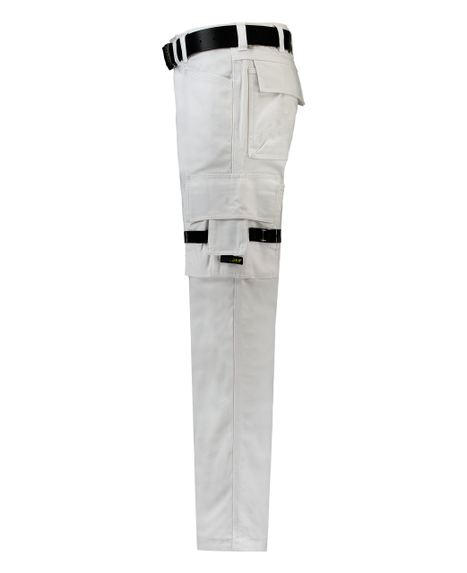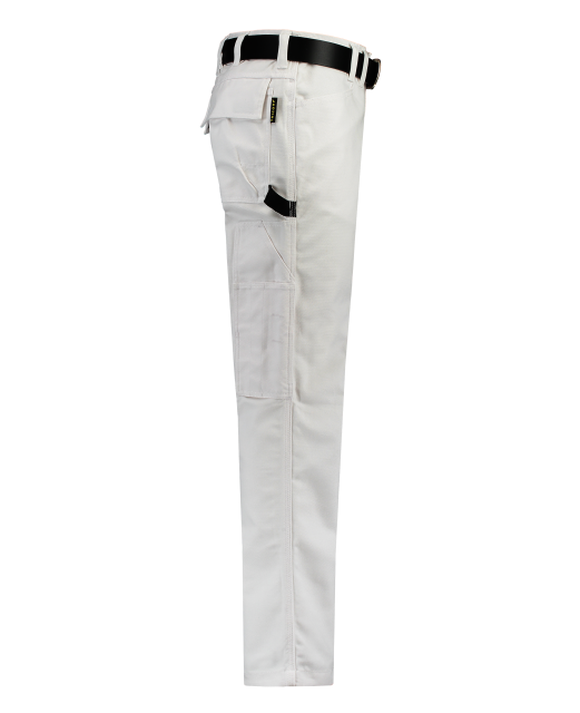 Deze canvas werkbroek heeft drievoudig gestikte naden, een hamerlus, een dijbeenzak welke aflsuitbaar is, en een duimstokzak. De dubbele zoom zorgt voor ongeveer 6 cm lengte.