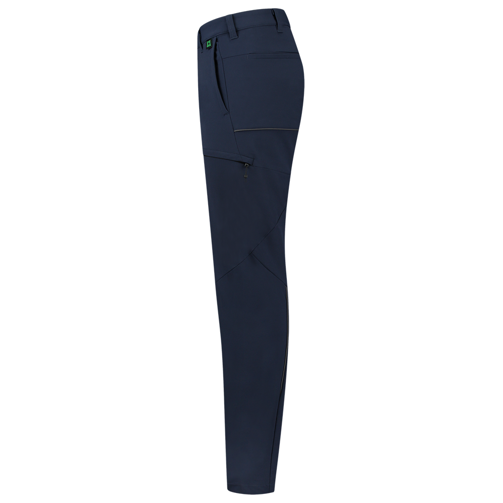 De duurzame Werkbroek Fitted Stretch RE2050 is een vernieuwend artikel met een sportieve en moderne uitstraling. Deze voorgevormde broek is uitgevoerd in een volledige stretchkwaliteit, wat het een uitermate comfortabele en representatieve broek maakt! De Werkbroek Fitted Stretch is onderdeel van het RE2050 kledingpakket: een duurzaam en circulair kledingpakket. Deze werkbroek is gemaakt van 92% recycled nylon en 8% elastaan. Dankzij het gebruik van recyclede grondstoffen is de CO2-uitstoot lager en verbruiken we minder water en energie tijdens de productie dan bij een werkbroek van virgin grondstoffen! Dit item is verkrijgbaar in de kleuren Ink en Black en in de brede maatrange 42-66. De dubbele zoom zorgt voor 6cm extra lengte. De reflective piping op het achterbeen en onder de achterzakken geeft de werkbroek een sportieve en moderne look. Met twee steekzakken en twee afsluitbare dijbeenzakken aan de voorkant en twee open achterzakken biedt de werkbroek voldoende opbergmogelijkheden.