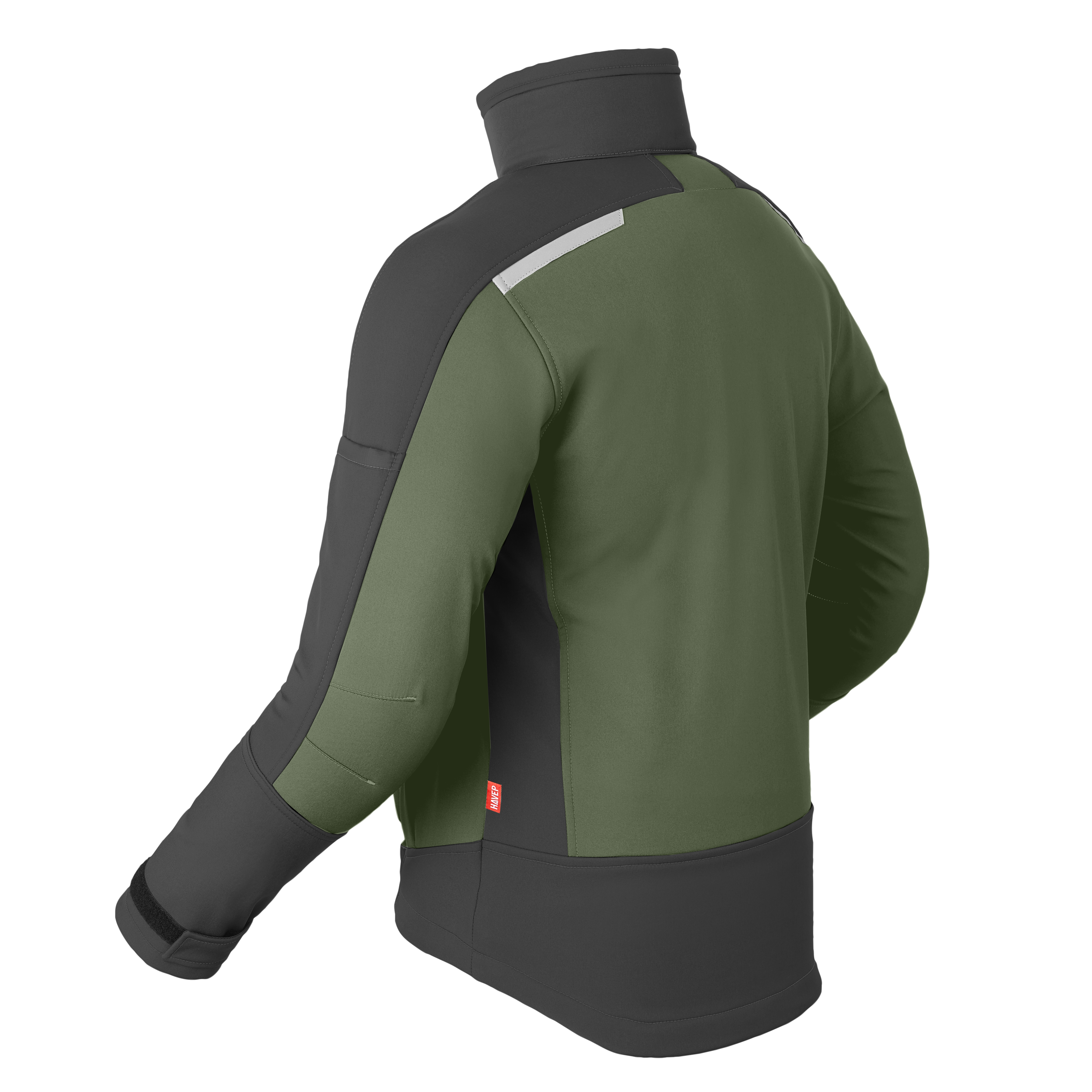 ritssluiting, 2 ingezette zijzakken met rits, 2 ingezette borstzakken met rits waarvan rechter borstzak voorzien is van D-ring voor badgehouder, pennenzakje op mouw, verstelbare taille d.m.v. trekkoord, ademend, winddicht en waterafstotend, mouwen verstelbaar d.m.v. klittenband, windvangers, verlengd rugpand, reflecterende piping, kinbeschermer