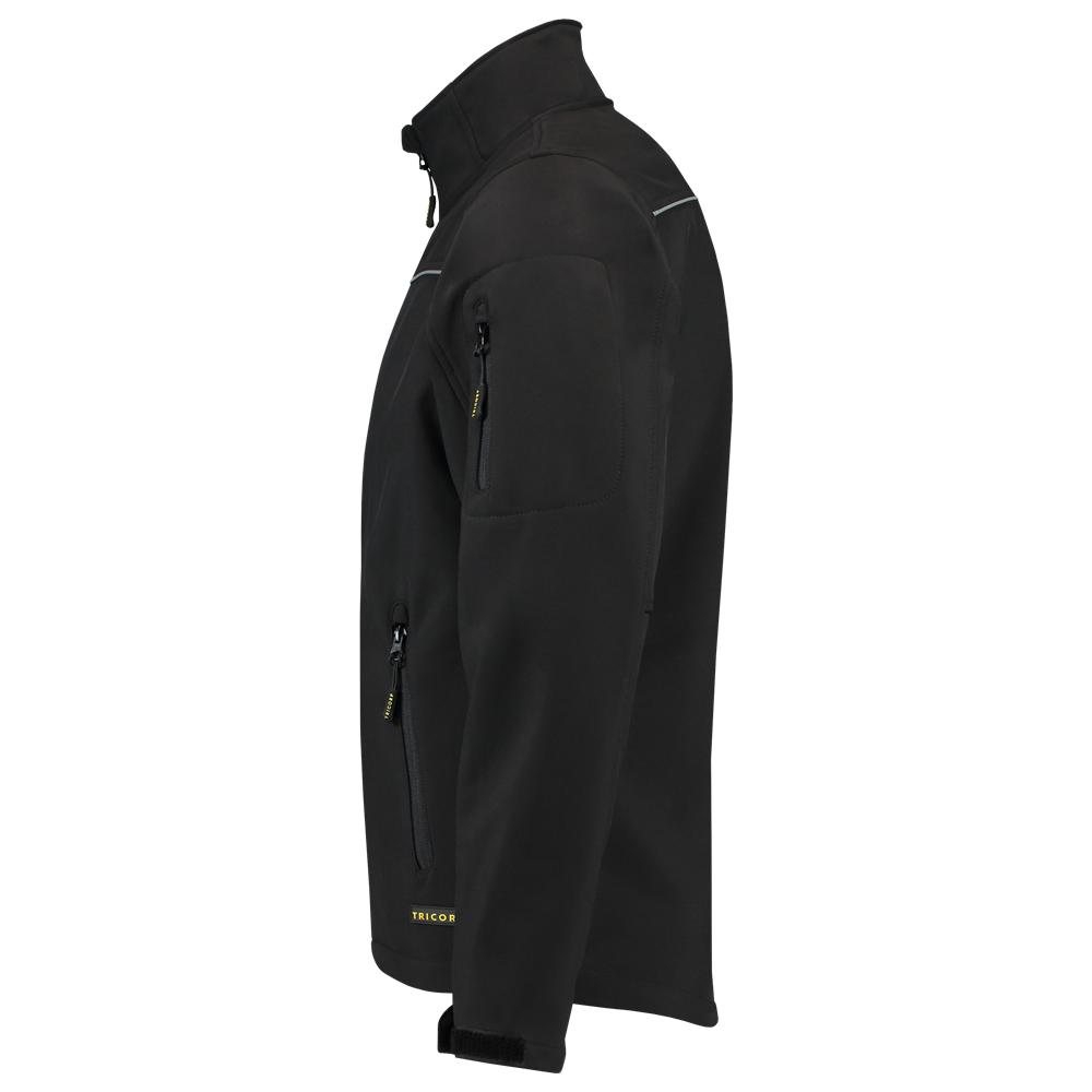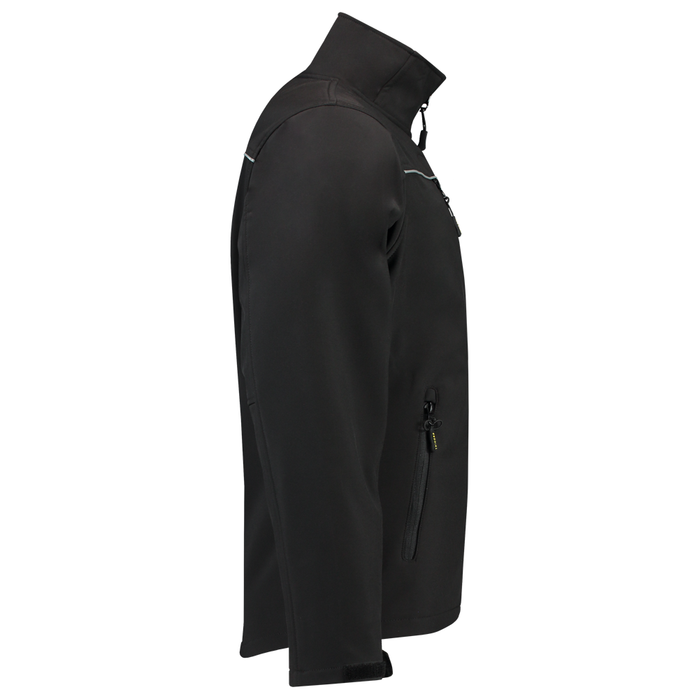 Een softshell is een soepele, comfortabele jas die ook waterafstotend en winddicht is. Het materiaal is gemaakt van een gewoven polyester. Het gebruik van een PU tussenlaag zorgt ervoor dat het ademend vermogen optimaal blijft en je dus niet gaat zweten. De rekbare stof zorgt ervoor dat je je bewegingsvrijheid behoudt. De softshell bevat stretch voor extra draagcomfort. Tevens is de jas beter zichtbaar door de reflectiepiping op de borst. Dit kledingstuk is voorzien van een gelamineerde rits voor een luxe uitstraling. De onderzijde van de jas is middels een elastisch koord met stoppers te verstellen en de manchetten zijn door middel van klittenband te verstellen. De Softshell is aan de voorzijde voorzien van 4 zakken en biedt daardoor veel opbergmogelijkheden. Ook heeft deze jas een binnenzak welke gebruikt kan worden voor het opbergen van de telefoon. Om doorbloeden te voorkomen raden wij aan om alleen druktechnieken te gebruiken die geschikt zijn voor softshell stoffen.