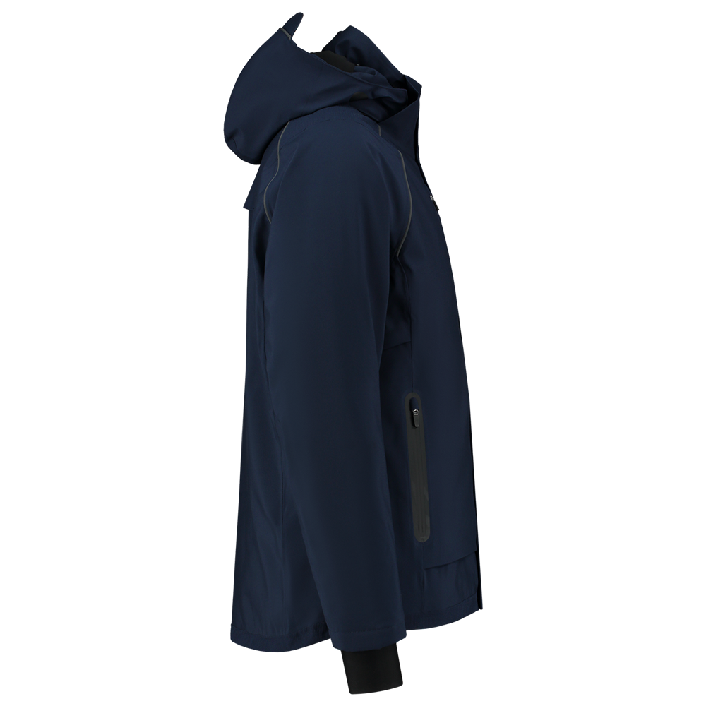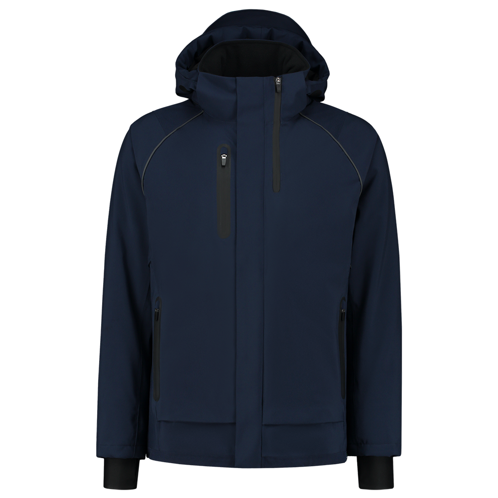 De Winter Tech Shell RE2050 is onderdeel van het RE2050 kledingpakket: een duurzaam en circulair kledingpakket. Deze winter tech shell is gemaakt van 94% recycled polyester en 6% elastaan. Dankzij het gebruik van recyclede grondstoffen is de CO2-uitstoot lager en verbruiken we minder water en energie tijdens de productie dan bij een werkjas van virgin grondstoffen! Dit item is verkrijgbaar in de kleuren Ink en Black en in de brede maatrange XS-5XL. De reflective piping elementen geven de werkjas een sportieve en moderne look. De Winter Tech Shell is voorzien van een printerrits aan de onderkant van het achterpand. De schouderpartij en zoom hebben een verstevigd contrastdoek. De jas heeft een tweede rits in de hals voor een verstelbare halsopening, voor wanneer de professional een sjaal of col wil dragen. De capuchon is afneembaar en heeft verdekte koordstoppers. Er is gebruik gemaakt van hoogwaardige materialen zoals een YKK-ritssluiting en een tricot manchet met duimopening. Onder de armen zitten verdekte ventilatieritsen voor extra comfort en voor een hoger ademend vermogen. De jas heeft getapete naden en is winddicht en extreem waterbestendig. Door het koord aan de onderzijde is de jas naar wens te verstellen. De Winter Tech Shell is EN 343 klasse 4/1 gecertificeerd. EN 343 is de norm die eisen, specificaties en testmethoden bepaalt voor beschermende kleding tegen regen en slecht weer, zoals mist en sneeuw. Daarnaast heeft deze werkjas de EN 14058 normering voor werken in een koele omgeving.