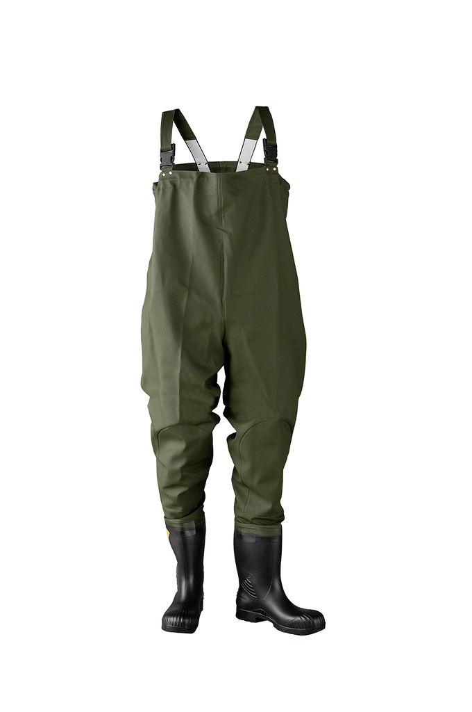 Waadbroek Dolfing Classic Universeel met verstelbare bretels en Actifort veiligheidslaarzen, voor allround en professioneel gebruik. De laarzen voldoen aan veiligheidsclassificatie S5 en hebben een beschermende neus en middenzool. Dankzij het grove profiel van de veiligheidslaarzen, heb je goede grip op de ondergrond. De bretels hebben een gespsluiting en zijn verlengd met elastiek voor meer draagcomfort. Aan de voorzijde van de waadbroek zit op borsthoogte een binnenzak. Deze waadbroek is voorzien van een 100% P8 PVC coating en is daardoor volledig waterdicht en zeer sterk.