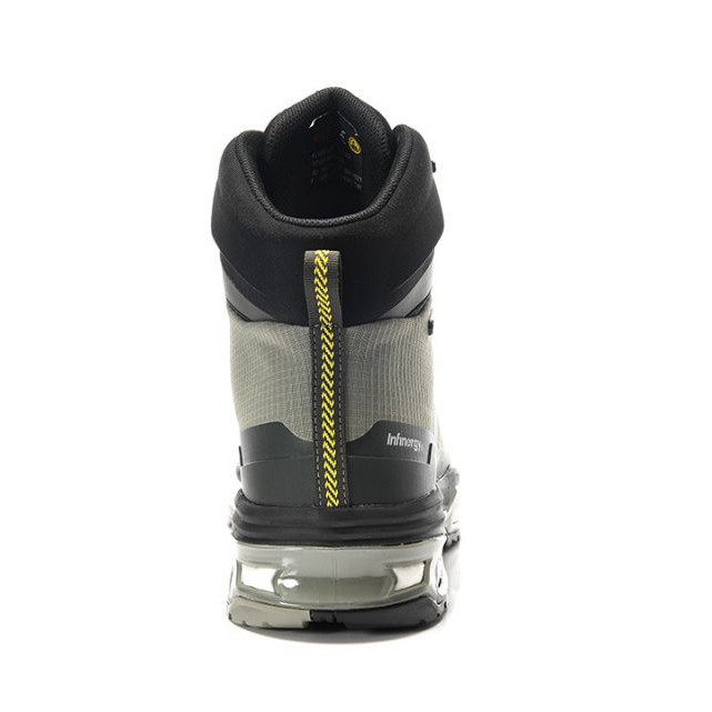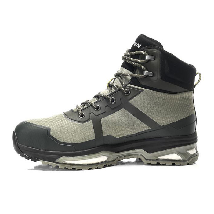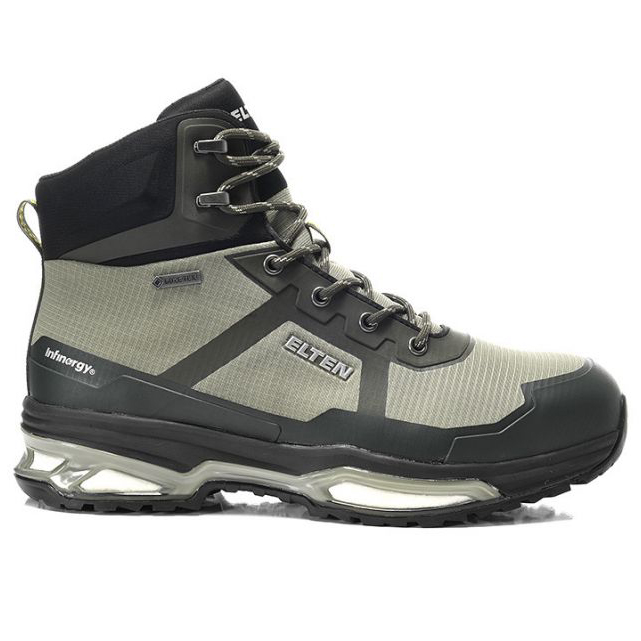 De BENTE XXE GTX green Mid ESD S3 biedt compromisloze voetbescherming voor iedereen die zich wil beschermen tegen gevaren in buitentoepassingen en waarde hecht aan een geavanceerde uitrusting. Deze veiligheidsschoen zit vol ideeën, maar is op geen enkel moment omslachtig of traag. Integendeel, want hier wordt een dubbel geplaatst Infinergy®-element van BASF gebruikt in de tussenzool, één in de voorvoet, één in de hiel. Dit betekent dat de drager dubbel profiteert van het hersteleffect van het partikelschuim tijdens het hardlopen. En met zo’n dynamisch loopgevoel is lang op de been zijn niet langer een belasting voor spieren en gewrichten. Ook in andere opzichten komt deze veiligheidsschoen volledig tot zijn recht, want de stalen neus en de penetratiebescherming van textiel zorgen voor een uitgebreide bescherming van de voet, en dankzij het hydrofobe textielbovenwerk en de GORE-TEX Extended Comfort Footwear worden vocht en nattigheid buiten gehouden. Tegelijkertijd wordt het nooit oncomfortabel in de schoen omdat de luchtcirculatie overal gewaarborgd is. De slipweerstand is altijd uitstekend dankzij de RUBBER-zool. De ESD-compatibele allround laars is te bestellen in de maten 40 t/m 48.