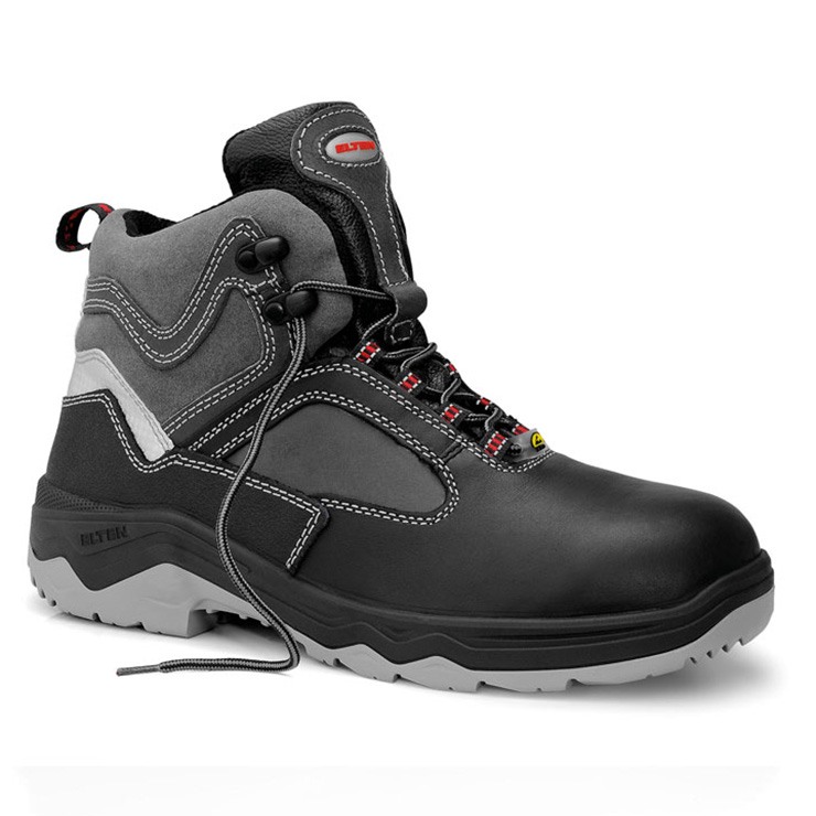 Deze werkschoenen, model van Elten Lex S3, is een hoge schoen uit de elten Classic-Line serie. De gepolsterde watertong bij de Elten Lex veiligheidsschoenen biedt hoog draagcomfort en voorkomt de vorming van pijnlijke drukpunten. Door het geïntegreerde reflecterende materiaal biedt de Elten Lex extra veiligheid door betere zichtbaarheid, ook bij ongunstige weers- en lichtomstandigheden. De microvezels zijn bijzonder licht en vormvast. Het bovenmateriaal is gemaakt van robuust, ademend rundleder dat bestand is tegen slijtage. De stalen neus en de metaalvrije tussenzool zorgen voor een goede bescherming.