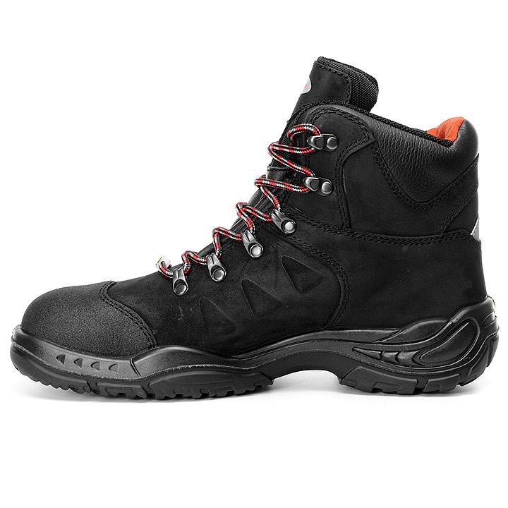 Een veiligheidsschoen voor zware werkomstandigheden. De TILL Mid ESD S3 HI uit de ELTEN SAFETY-GRIP serie is een zeer stevig model met ESD-certificering. Het bovenmateriaal is gemaakt van robuust rundleder en de binnenvoering van ademend textiel. Deze schoen is zeer vormstabiel en comfortabel! De ergonomisch gevormde stalen neus beschermt uw tenen tegen stoten en vallende voorwerpen en de stalen tussenzool tegen intreden in scherpkantige materialen. Bovendien zorgt de slijtvaste beschermneus voor een langere levensduur van uw schoen. De SRC-gecertificeerde zool heeft een hoge slipweerstand, is hittebestendig tot 130° C, kortstondig tot 300° C en flexibel bij lage temperaturen tot -20° C. Een extra pluspunt: deze krachtige veiligheidsschoen is warmte-isolerend tegen thermische invloeden van buitenaf! Door zijn certificering volgens de DGUV-regel 112-191 kan de schoen orthopedisch worden aangepast, zonder zijn goedkeuring als veiligheidsschoen te verliezen.