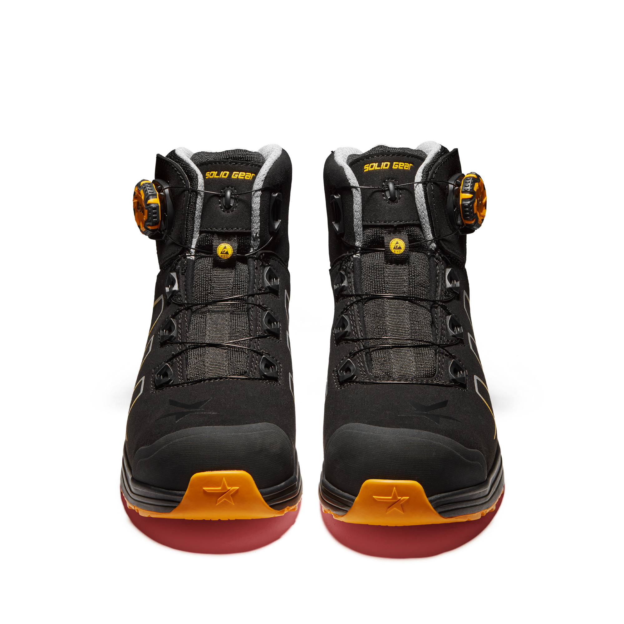 SOLID GEAR Reckon creëert een superieur compromis tussen lichtgewicht en demping. Dit resultaat wordt bereikt door een bovenwerk van microfiber met TPU-versterking en een PU tussenzool met hoge demping. Bovendien biedt deze comfortabele halfhoge laars geweldige grip dankzij het patroon en de samenstelling op de rubberen buitenzool. We gebruiken het BOA® sluitsysteem voor eenvoudig sluiten van de schoen. Reckon biedt een vergelijkbare pasvorm en eenvoudige instap net zoals een sportieve laars. Niet-metalen bescherming in neus en composiet zool. ESD-functie volgens BS EN 61340-4-3: 2002. Bovenwerk: Microfiber met TPU-versterkingen Buitenzool: Olie- en slipbestendige buitenzool Tussenzool: Gegoten PU Voetbed: Zeer goed ademend, vocht afvoerend en antibacterieel PU-schuim Pasvorm: Wijd Functie: BOA® sluitsysteem Maten: 36-48 Veiligheidsnorm: EN ISO 20345: 2011 S3, SRC Bescherming: Composiet zool en glasvezel neus