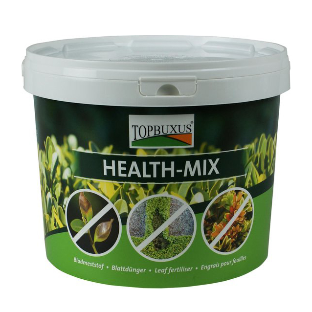 Top Buxus Health-Mix is een bladmeststof met spoorelementen op 100% natuurlijke basis. Is niet chemisch, makkelijk te verwerken en veilig in gebruik.