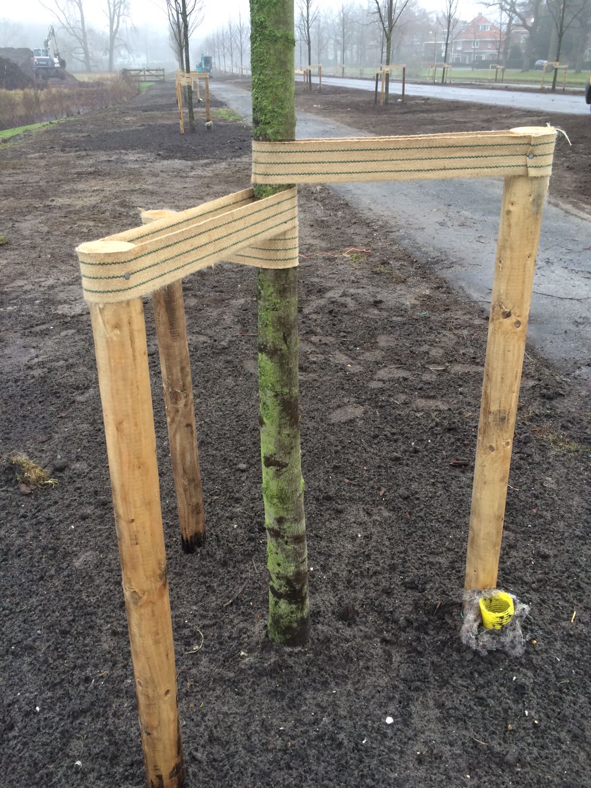 Door middel van boombandnagels kan de band aan de boompaal bevestigt worden, maar het is verstandiger om de jute band vast te schroeven. Door de band vast te schroeven met een torxschroef samen met een revetje (sluit- of carrosseriering) wordt voorkomen dat de band er niet doorheen schiet. Een torxschroef is na een aantal jaren makkelijker los te draaien dan bijvoorbeeld een kruiskopschroef.