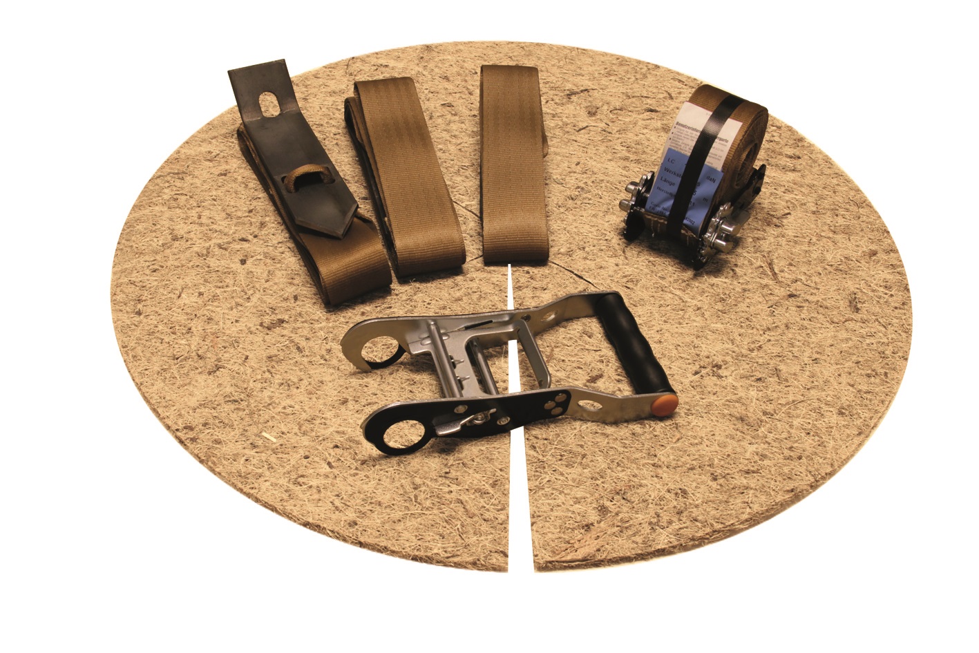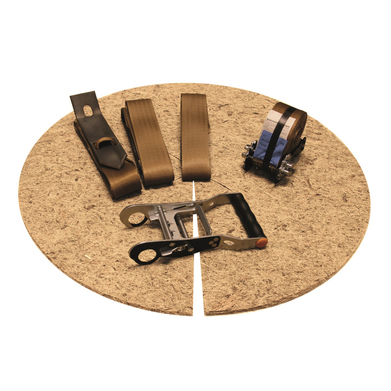- Verbind de 3 ankerbanden met 1 gordel inclusief ratel