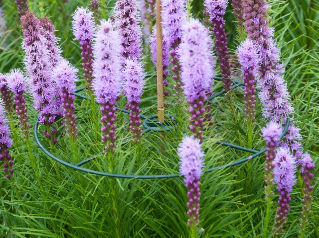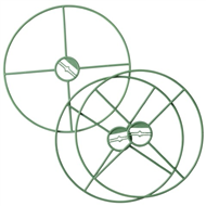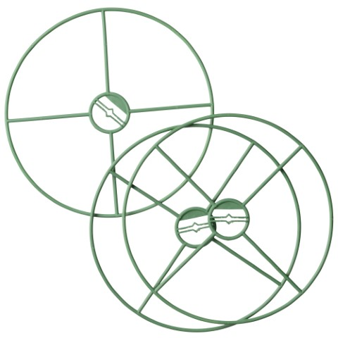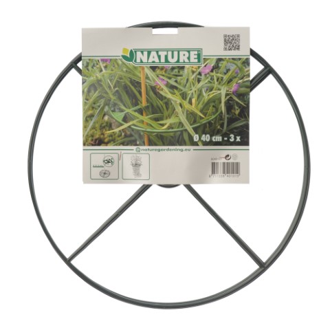 Groene steunring van kunststof met een verstelbare diameter van 30 tot 40 cm ter ondersteuning van planten, te bevestigen op een plantenstok. Verpakt per set van 3 stuks.