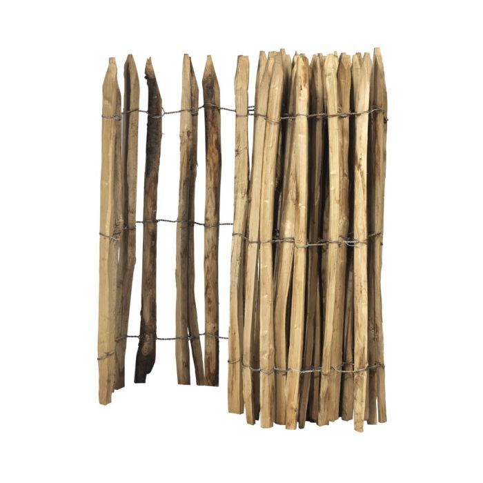 Kastanjehout verweert onder invloed van zonlicht en verkleurt grijs, maar dit heeft geen enkele invloed op de duurzaamheid en levensduur van het materiaal. De latten zijn aan elkaar gevlochten met gegalvaniseerd ijzerdraad. Voor deze hoogte adviseren wij het gebruik van kastanje palen van 160 cm hoog als tussenpaal.