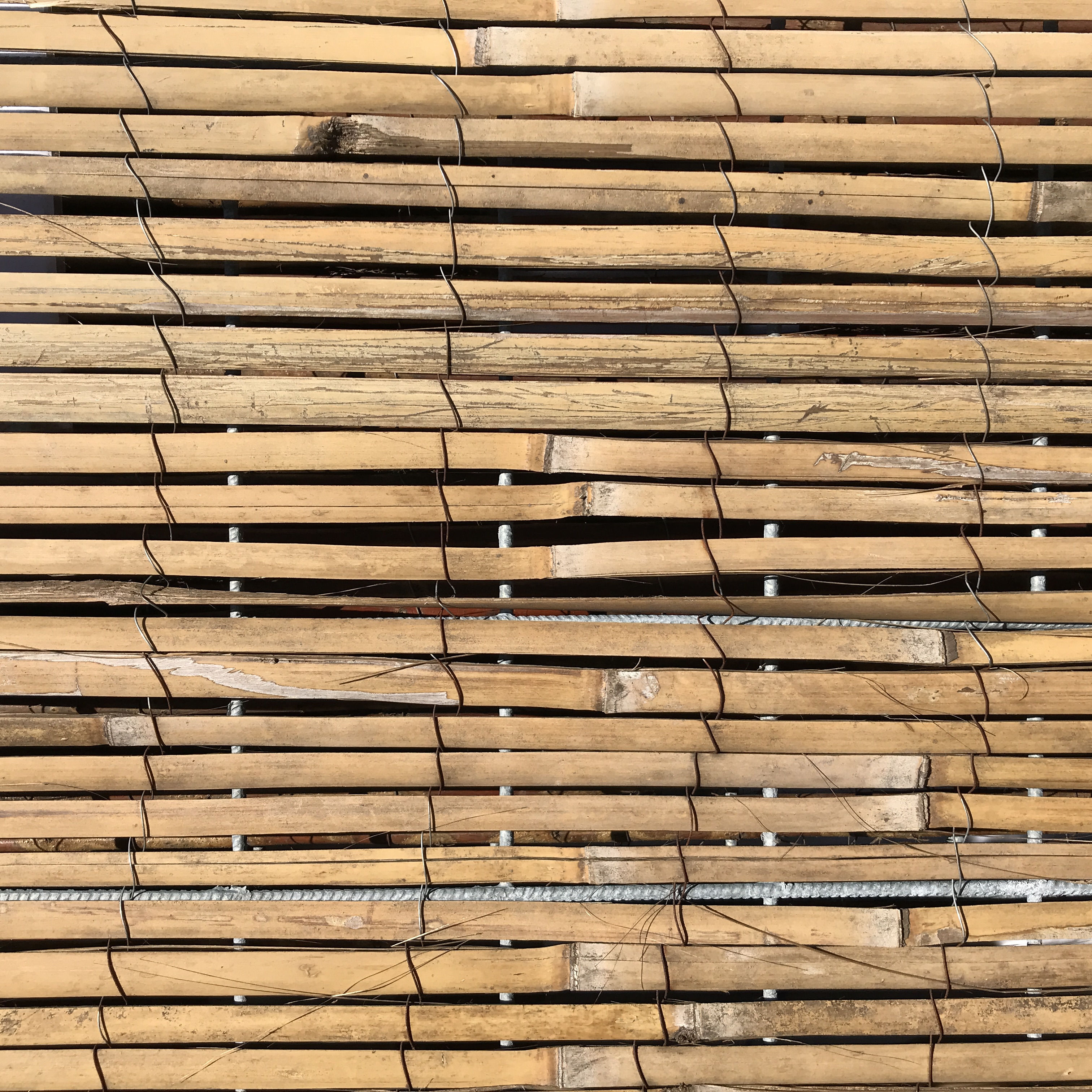 Bamboemat met een dikte van ongeveer 1 cm, gemaakt van gespleten bamboestokken.