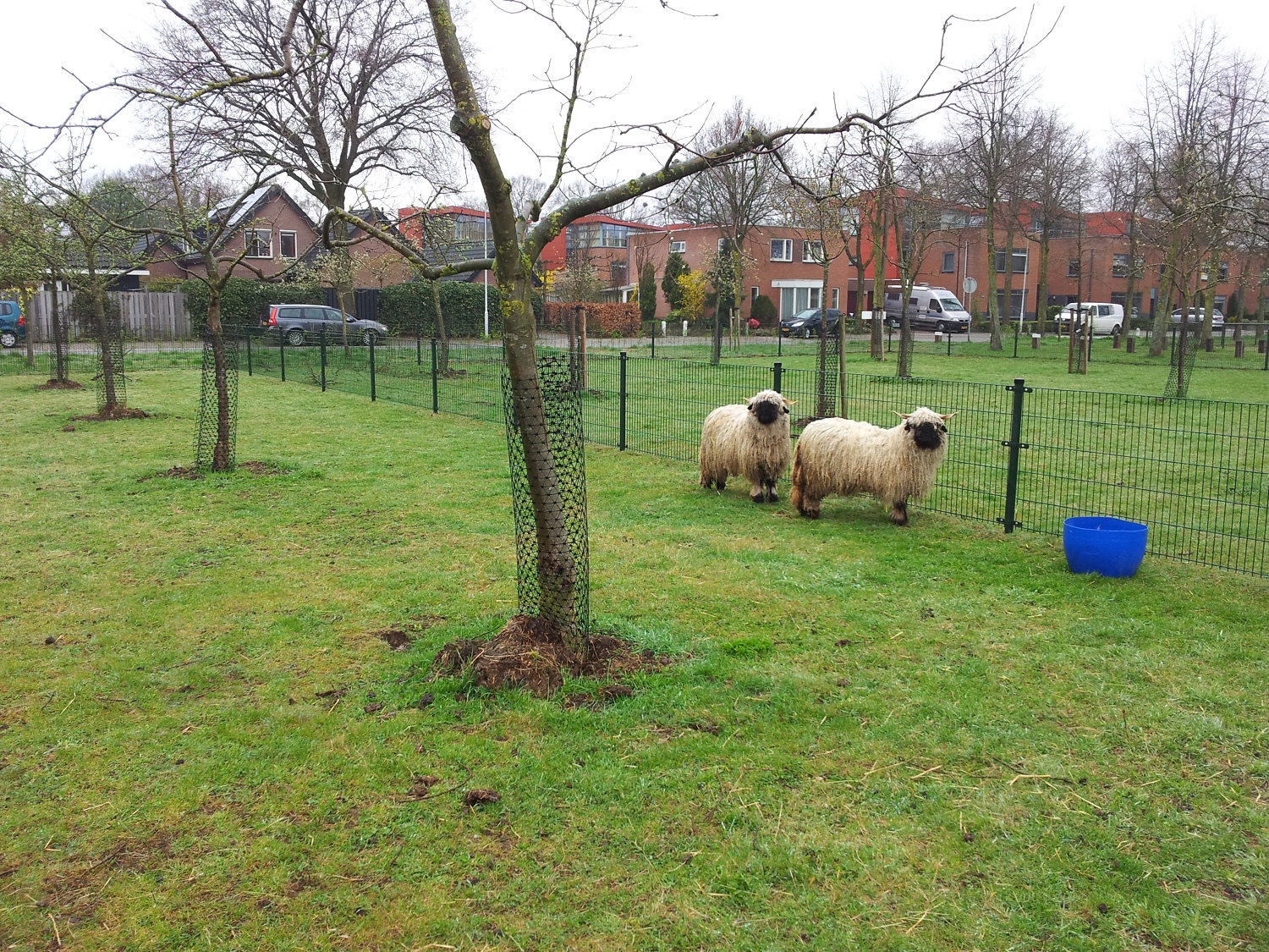 Voorkom ingroeien, controleer ieder jaar de boomstambeschermers en zet deze eventueel losser of vervang ze in het geheel.