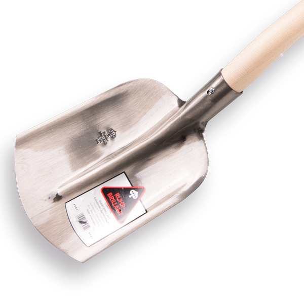 Steekbats of panschop met gehard en gepolijst blad, dulstand 1/4 half gebogen, bladmaat 000, compleet met een sterk gebogen Atlas blijham steel van 95 cm met sterke doorgestoken hilt, merk blad Ruhr Brillant. Atlas schopstelen zijn extra sterk, ze worden in kokend water gebogen waardoor de nerf met de bocht meeloopt.