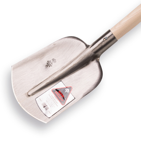 Steekbats of panschop met gehard en gepolijst blad, dulstand recht, bladmaat 000, compleet met een licht gebogen Atlas blijham steel van 100 cm met sterke doorgestoken hilt, merk blad Ruhr Brillant. Atlas schopstelen zijn extra sterk, ze worden in kokend water gebogen waardoor de nerf met de bocht meeloopt.