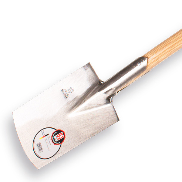 Spade Ideal type Britta. Dit is een lichtgewicht model voorzien van een gepolijst blad inclusief een essen houten steel van 85 cm lang. Dankzij het lagere gewicht is deze spade uitermate geschikt voor bijvoorbeeld dames en senioren.
