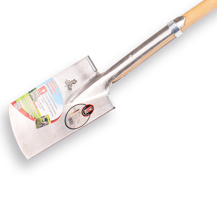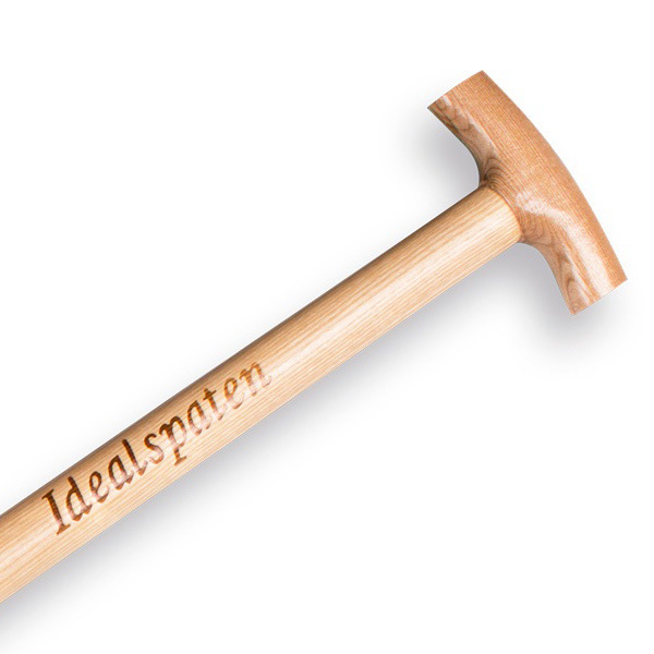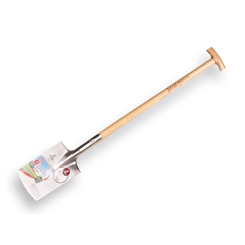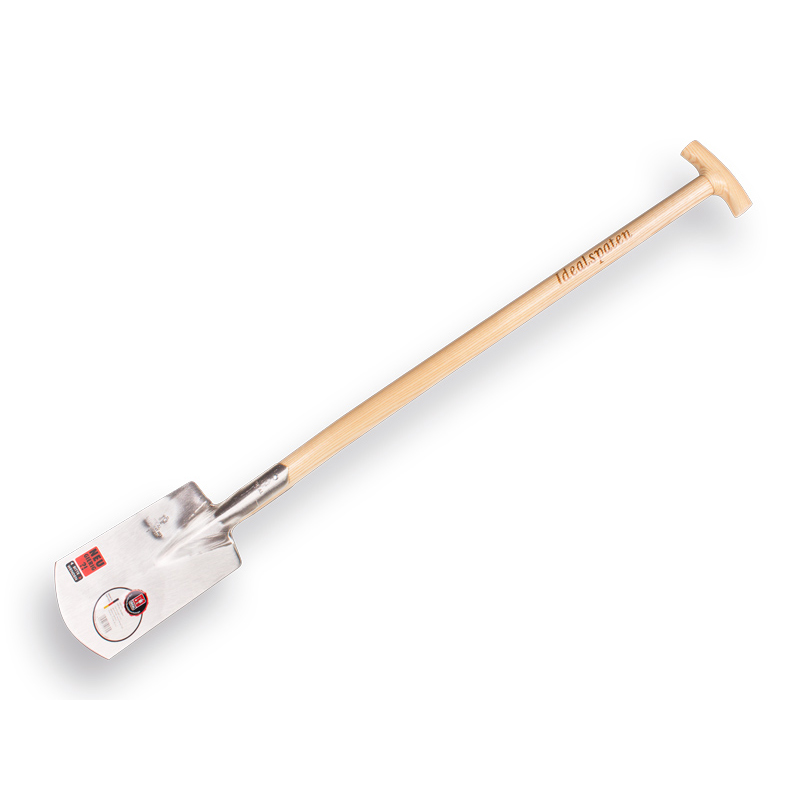 Spade Ideal-Roden type 1002-2 met zeer sterke essen T-Steel van 85 cm en dubbele veer met ringen. Het ontwerp, de materialen en de uitvoering maken deze spade uitermate geschikt voor het extreem zware werk zoals het rooien van bomen en struiken of het werken in zware natte gronden.