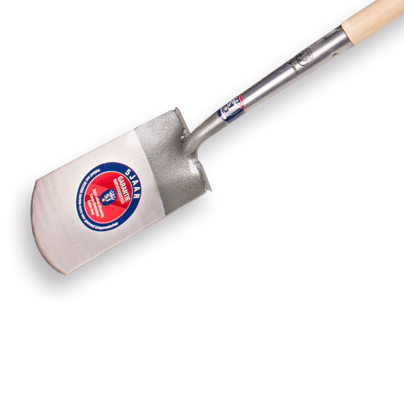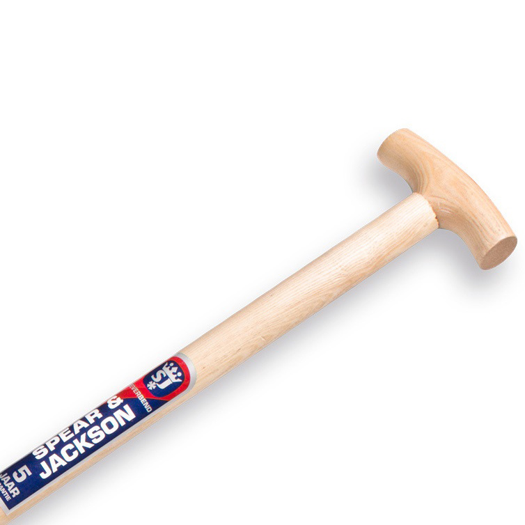 Spear & Jackson Spade type 1041 TRD. Blank gepolijst blad met opstapjes die de voeten ontlasten bij het zwaardere werk, geleverd met degelijke essen houten T-steel.