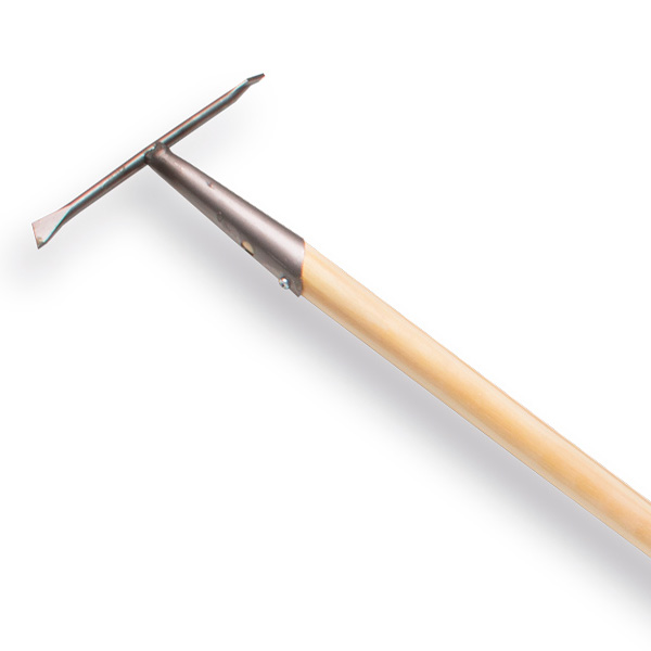 Voegenkrabber uit verzinkt staal met steel van 150 cm, merk Atlas. De dubbele krabber is voorzien van een spitse en hoekige zijde.