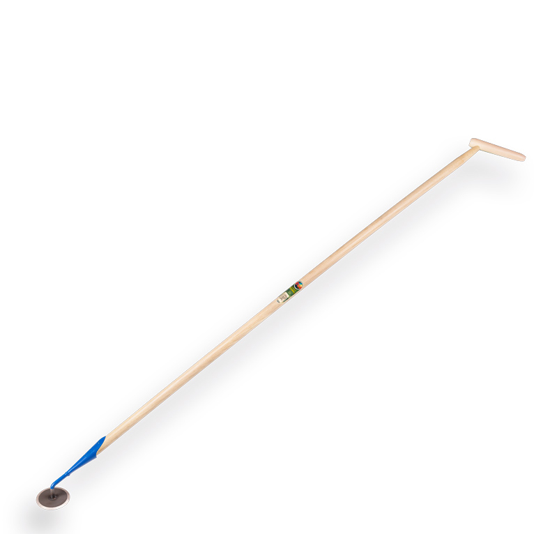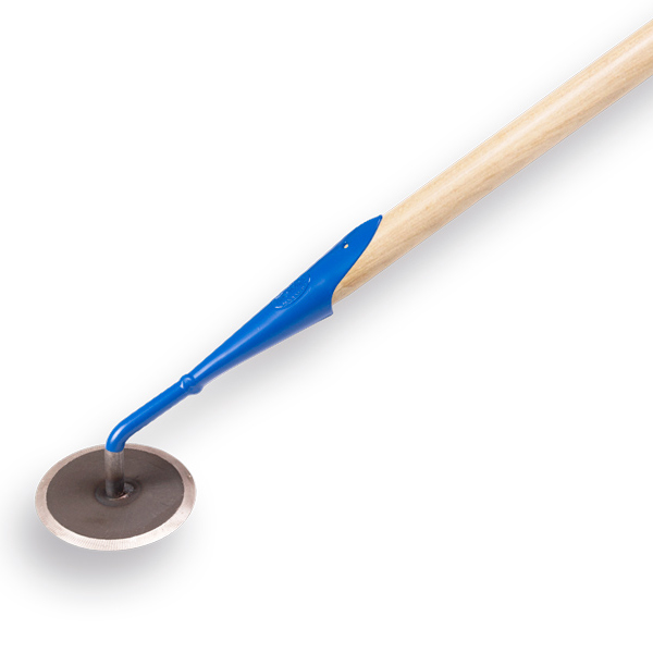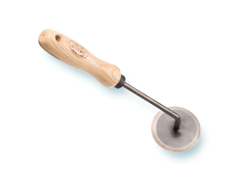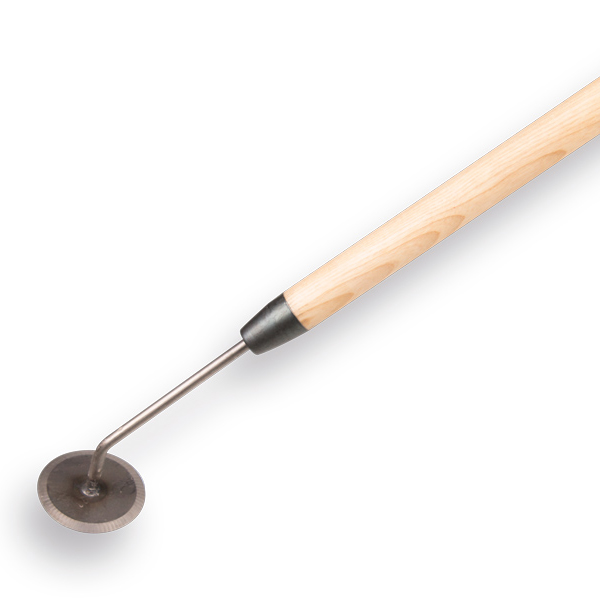 Rondschoffel of handschoffel met een volledig rond blad, diameter van 7cm, voorzien van een Essen houten handvat met een lengte van 14 cm, merk De Wit.