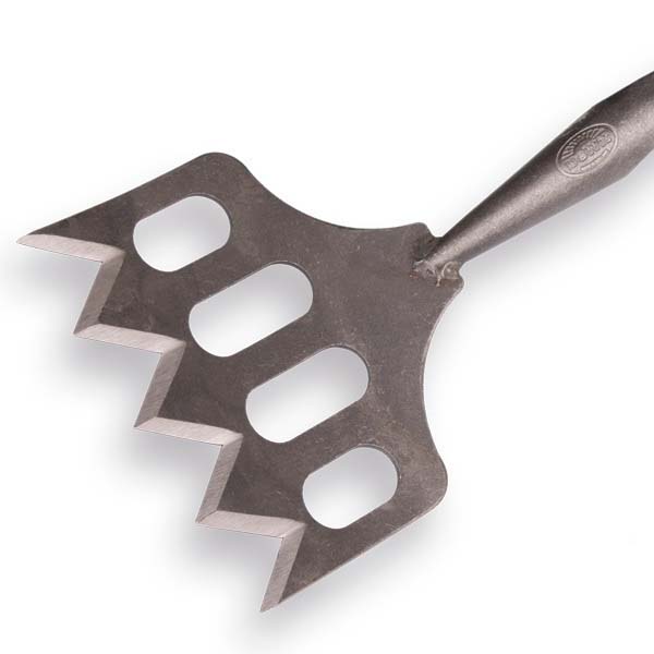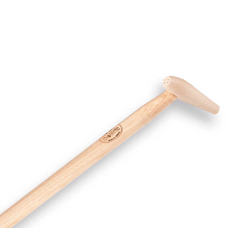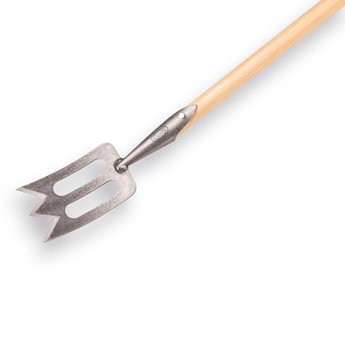 Gesmede schoffel Sprok model met een breedte van 18 cm met een Essen houten steel van 170 cm, merk De Wit. Het stevige opengewerkte blad is voorzien van scherpde schuine snijkanten. Dankzij het ontwerp van het blad kan er met minder kracht meer werk verzet worden.