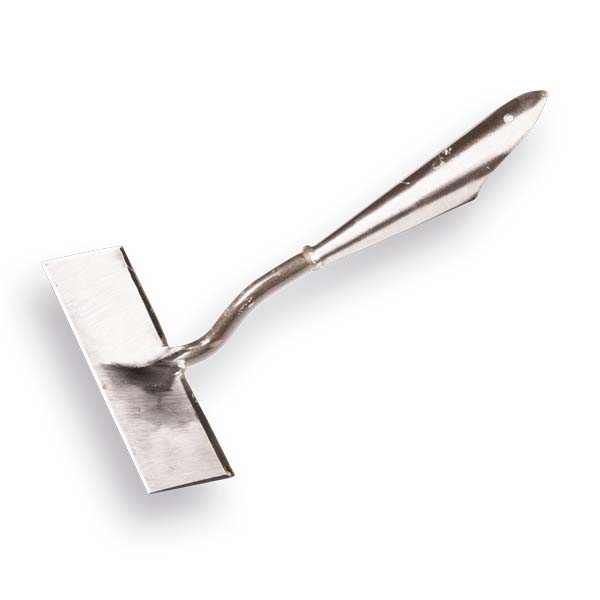 Gesmede schoffel model Venlo met een breedte van 20 cm, zonder steel. De Venlo schoffel kenmerkt zich door de vierkante vorm van het blad, dat tevens aan alle kanten geslepen is, waardoor in meerdere richtingen gewerkt kan worden.