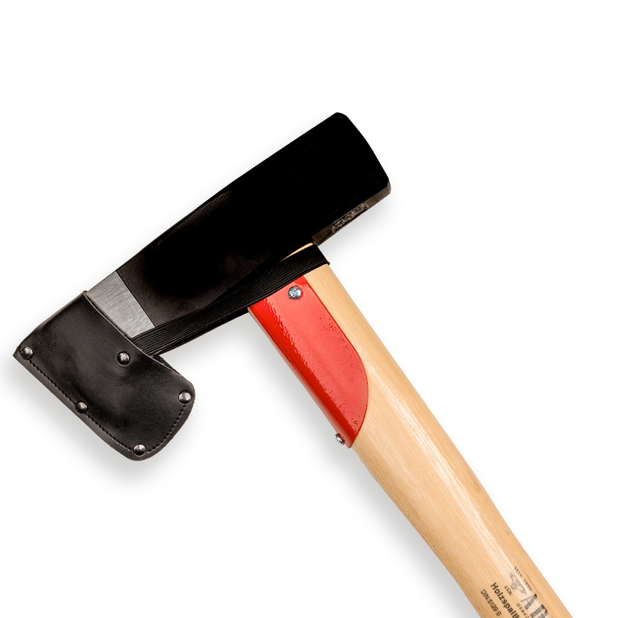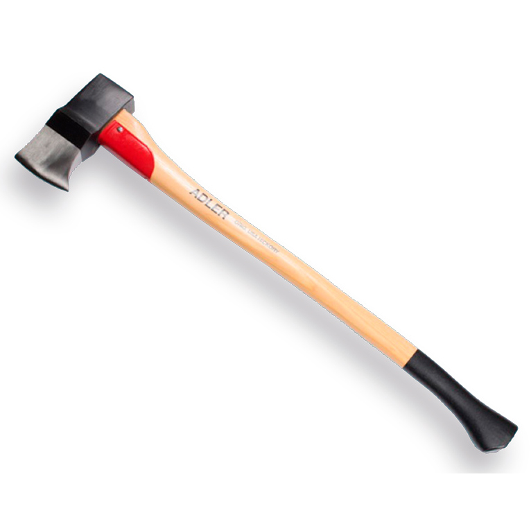 Kloofbijl of kloofhamer ADLER met een kopgewicht van 3000 gram, voorzien van een gehard stalen kop, een Hickory steel in lengte 90 cm, antislip greep en een stalen steelbescherming. Wordt geleverd met een stevige lederen beschermhoes, die dankzij een elastische band eenvoudig over de bijlkop geplaatst kan worden.