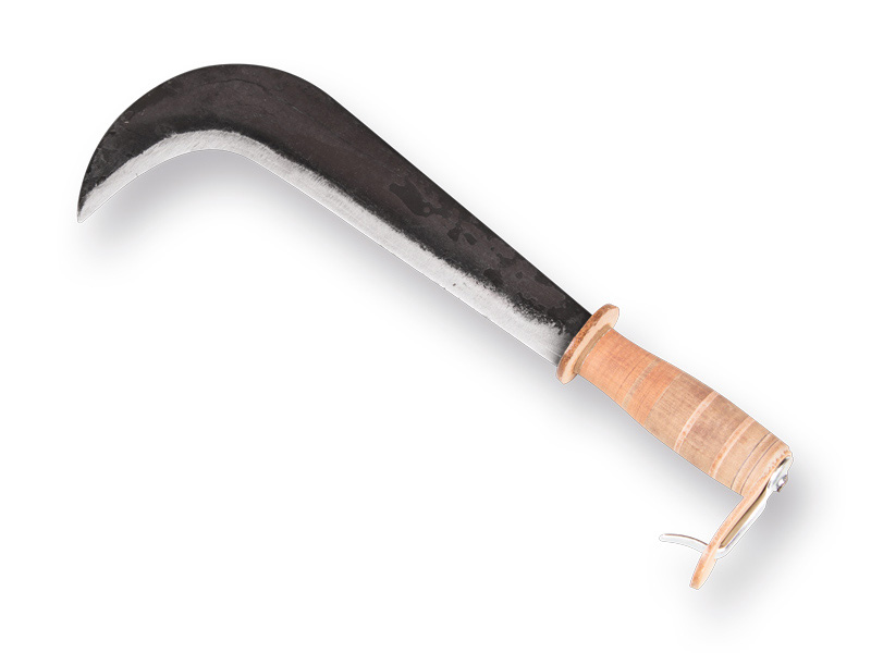 Kapmes of machete Zwitsers model met een lengte 40 cm, voorzien van een lederen handgreep, merk Adler.