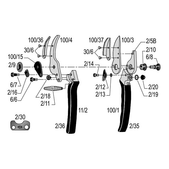 Snoeischaar Felco 100, knip & pakschaar of bloemenschaar voorzien van klemstukken om stengels beet te kunnen pakken, ook ideaal voor rozensnoei, voor rechtshandig gebruik.