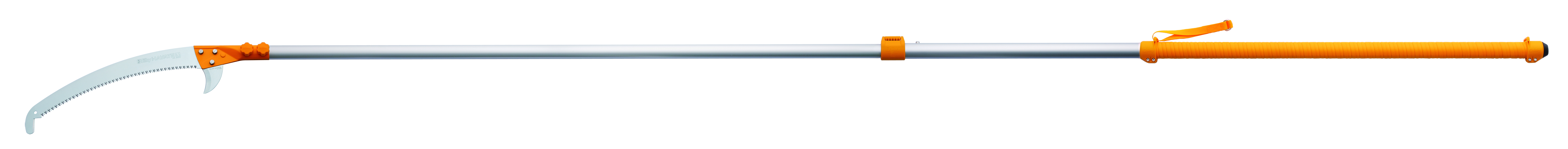 Boomzaag of stokzaag Silky Hayate 3800-6.5, gebogen blad met extra grove vertanding en twee sikkels, bladlengte 42 cm, 2-delige telescoopsteel uitschuifbaar van 240 tot 380 cm.