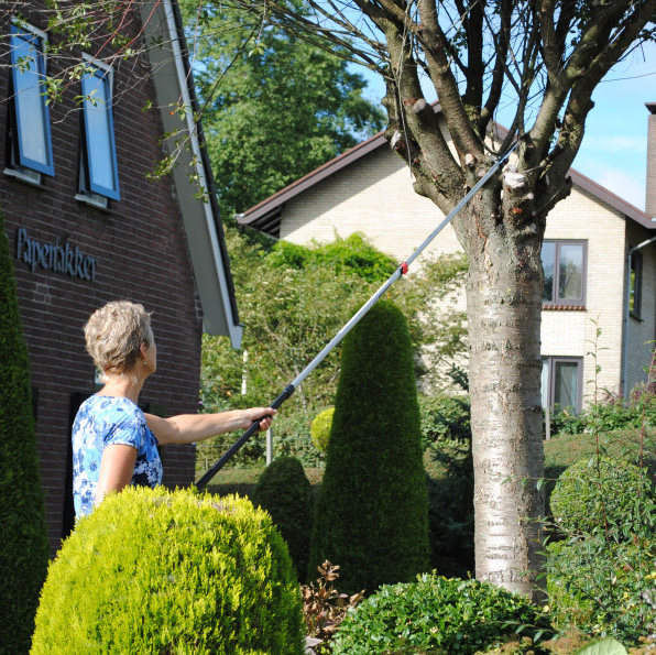 Snoei als een professional met de Zubat stokzaag! Deze stokzaag is licht van gewicht en goed manoeuvreerbaar, zelfs op grote hoogtes en in dichtbegroeide ruimtes. Het zagen verloopt makkelijk, snel en veilig. Geen gestuntel op een ladder, maar stevig met beide benen op de grond.