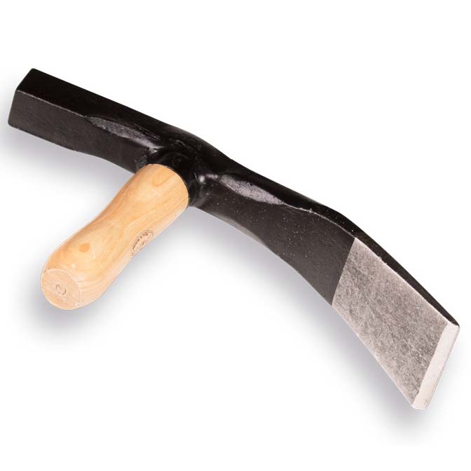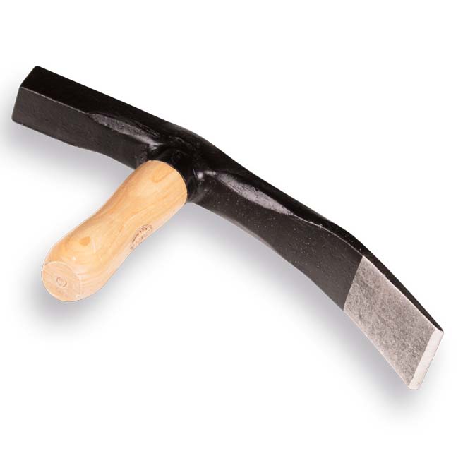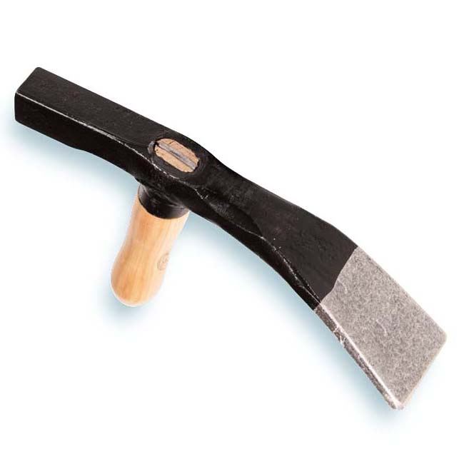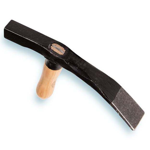 Gesmede straathamer of klinkerhamer, voorzien van een getailleerde Essenhouten steel van 13 cm. De gebogen platte kant heeft een bekbreedte van 4 cm, de rechte zijde heeft een kopmaat van 3 x 3 cm, merk De Wit.
