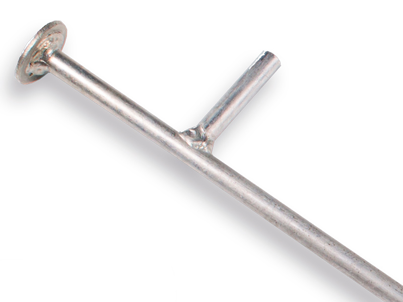 Draadpen of uitzetpen met een lengte van 60 cm, verzinkt en voorzien van een geharde punt en een haakse kop van 10 cm breed, de diameter van de pen is 14 mm, bovenop de draadpen zit een ronde slagkop zodat de pen makkelijk in de grond geslagen kan worden, merk Labora.