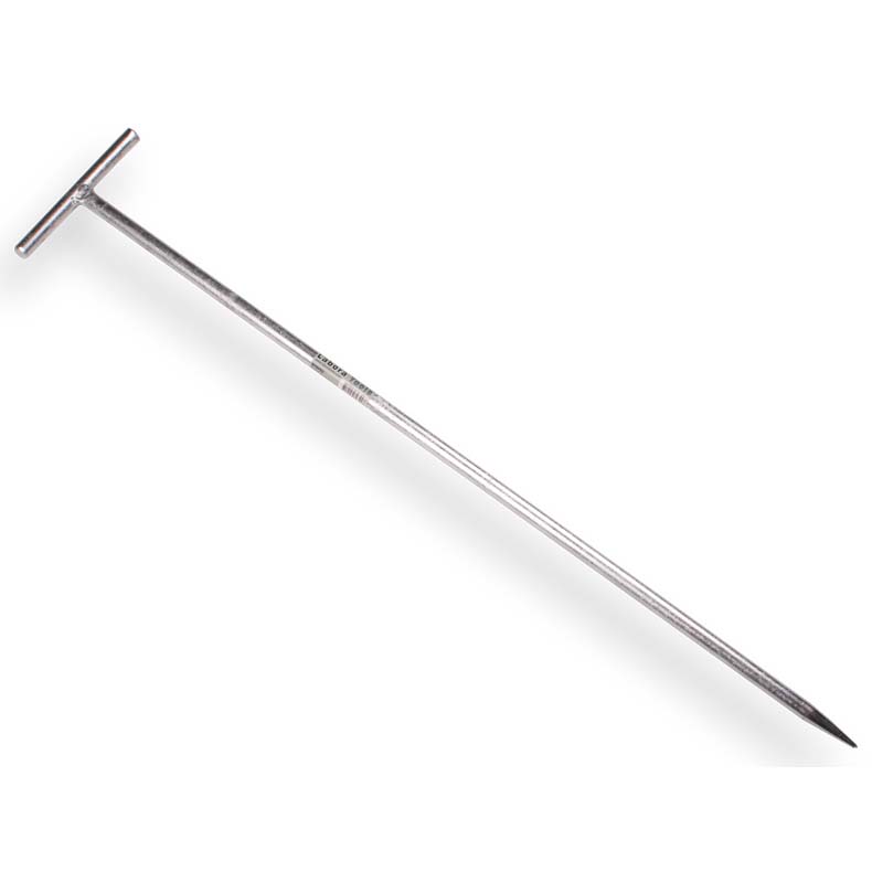 Draadpen of uitzetpen met een lengte van 50 cm, blauw gelakt en voorzien van een geharde punt en een T-kop van 12 cm breed, de diameter van de pen is 8 mm, merk De Wit.