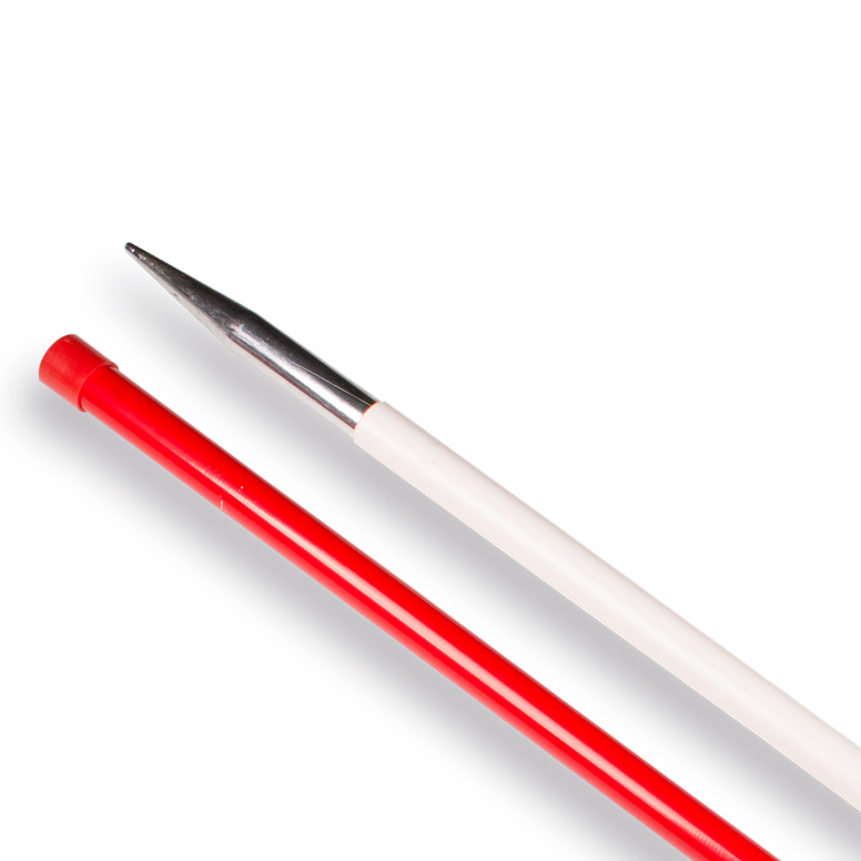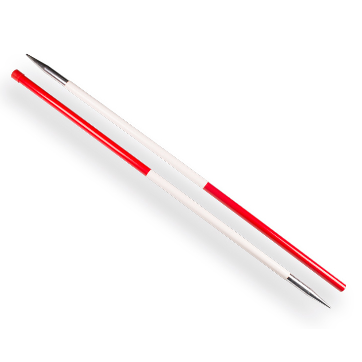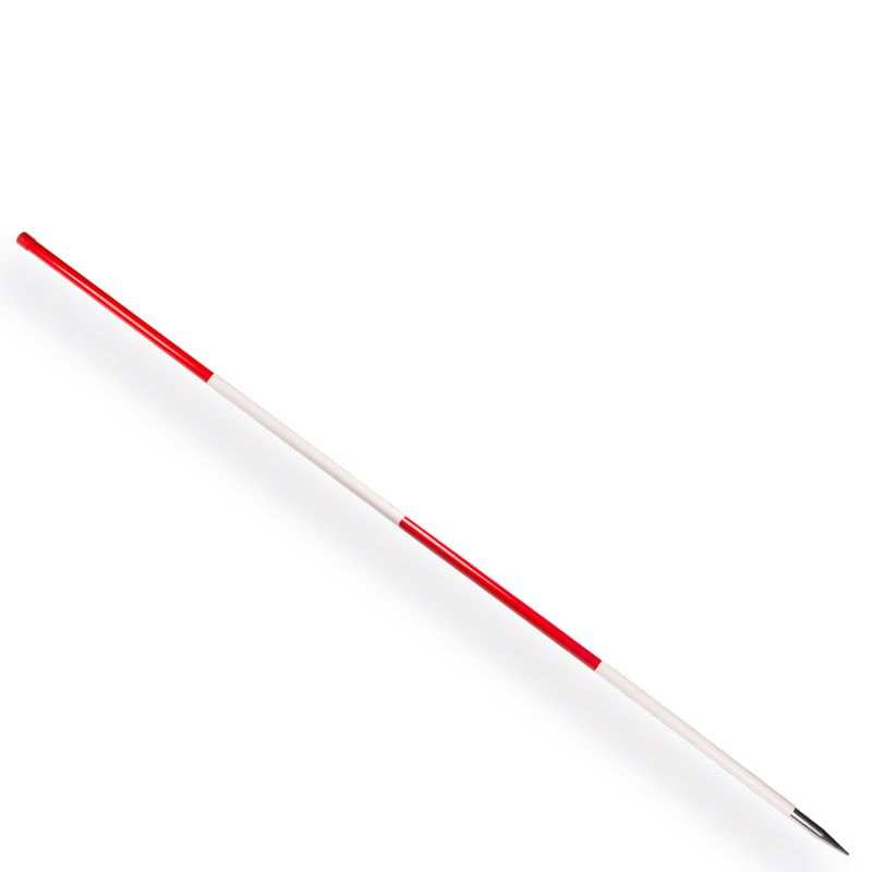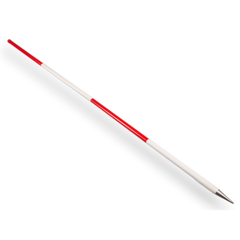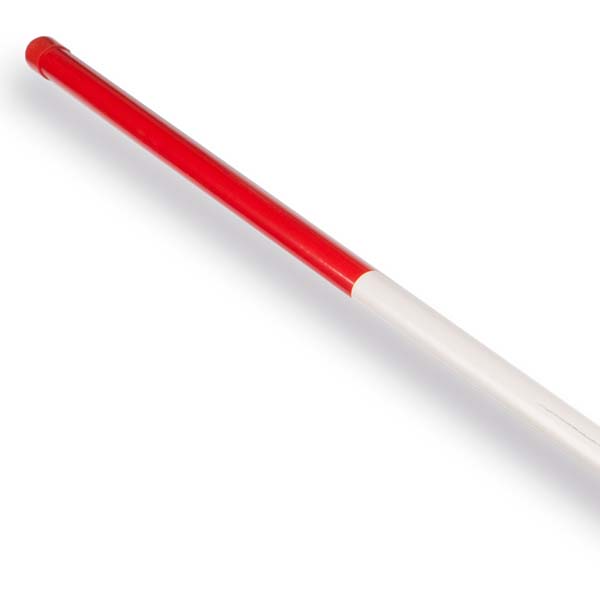 Jalonstok met een lengte van 200 cm, diameter 28 mm, bovenzijde rood, houten stok voorzien van een sterke PVC ommanteling, ronde stalen punt, merk Nestle.