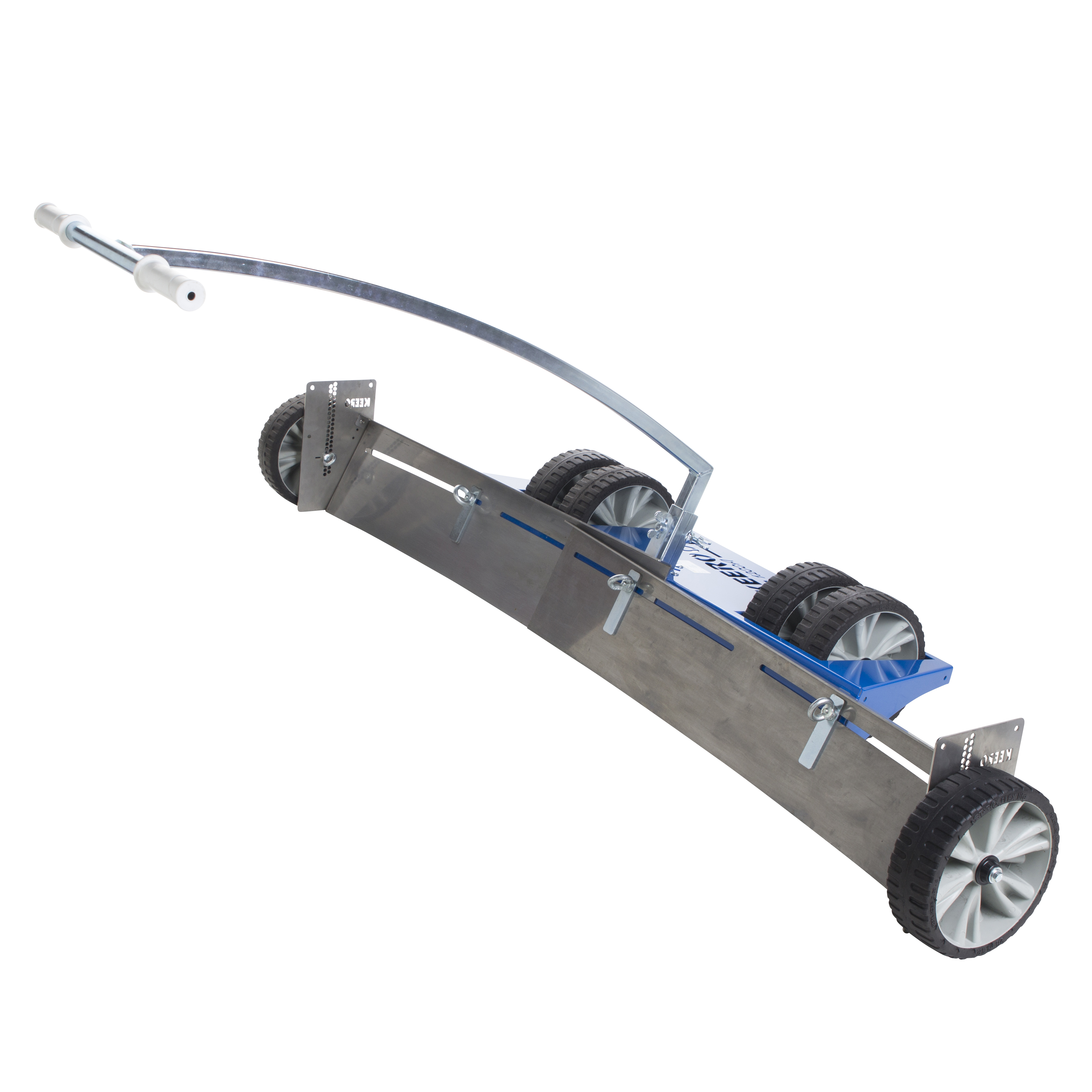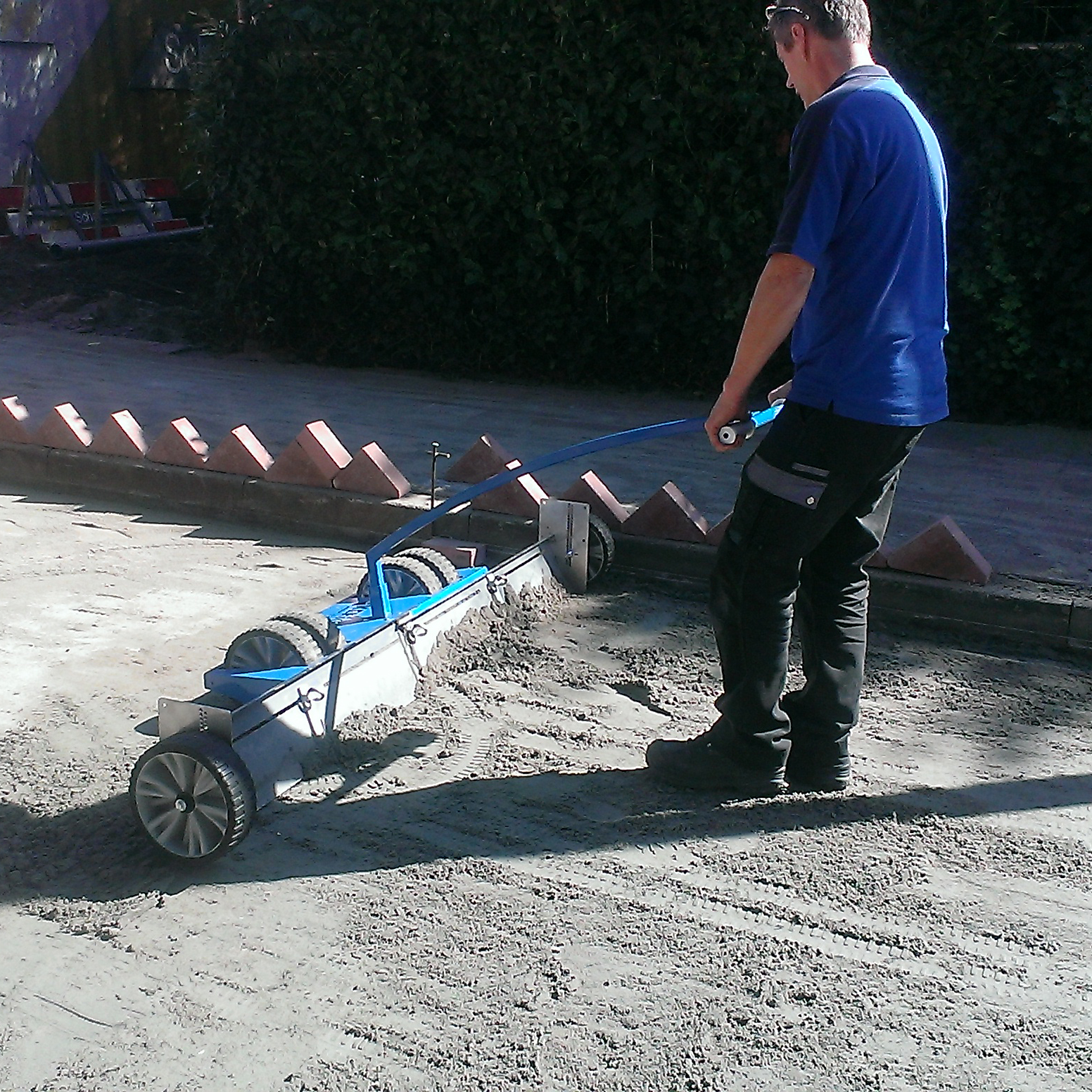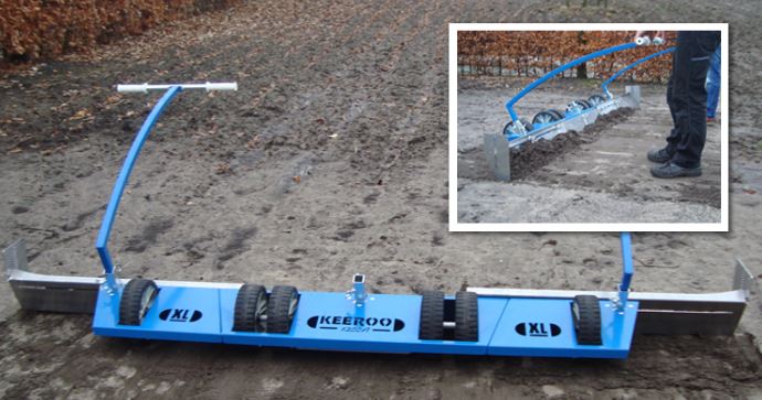 De Keeroo is een handige, doeltreffende en multifunctionele egaliseerschuif. Met dit apparaat leg je de bedding, die dient als ondergrond voor bijvoorbeeld straatwerk, gazon of beplanting, snel egaal en strak. Overtollig zand of grond wordt gemakkelijk verplaatst naar lagere delen zodat alles op hetzelfde niveau komt. De Keeroo garandeert een gelijkmatige bedding en door de robuuste wielen vindt er nauwelijks spoorvorming plaats.