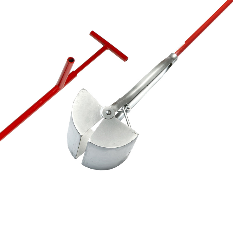 Putschep, putgrijper of kolkschep met een steellengte van 150 cm, voorzien van ronde inklapbare bekken met een doorsnede van 13 cm, type E315.