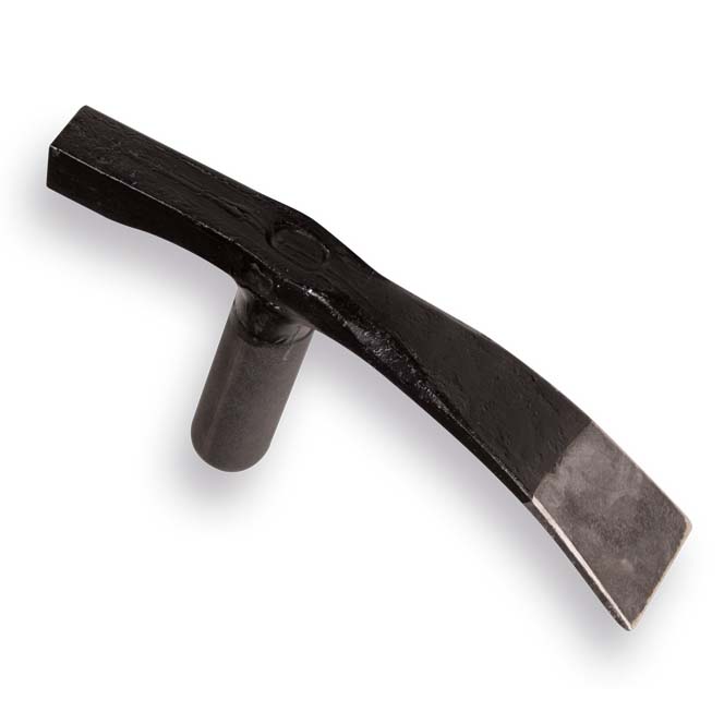 Gesmede straathamer of klinkerhamer, voorzien van een vrijwel ontbreekbare rechte fiberglassteel van 12 cm. De gebogen platte kant heeft een bekbreedte van 4 cm, de rechte zijde heeft een kopmaat van 3 x 3 cm, merk De Wit.