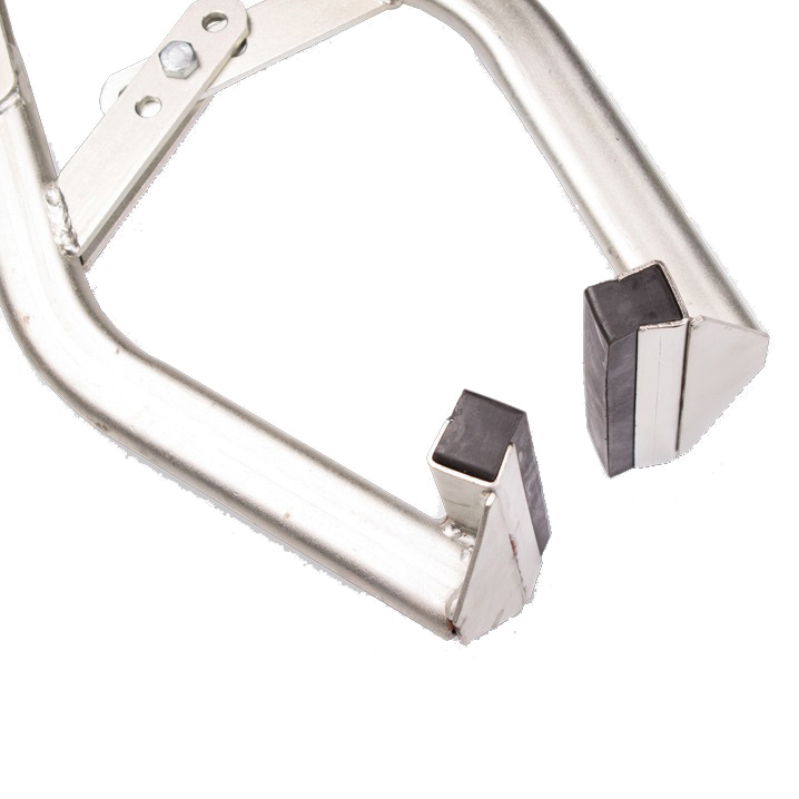 Trottoirbandtang of bandentang met een totale lengte van 85 cm, gemaakt van verzinkt staal, verstelbaar in drie standen en voorzien van een brede bek met rubber grijpers van 15 cm breed, merk Labora.