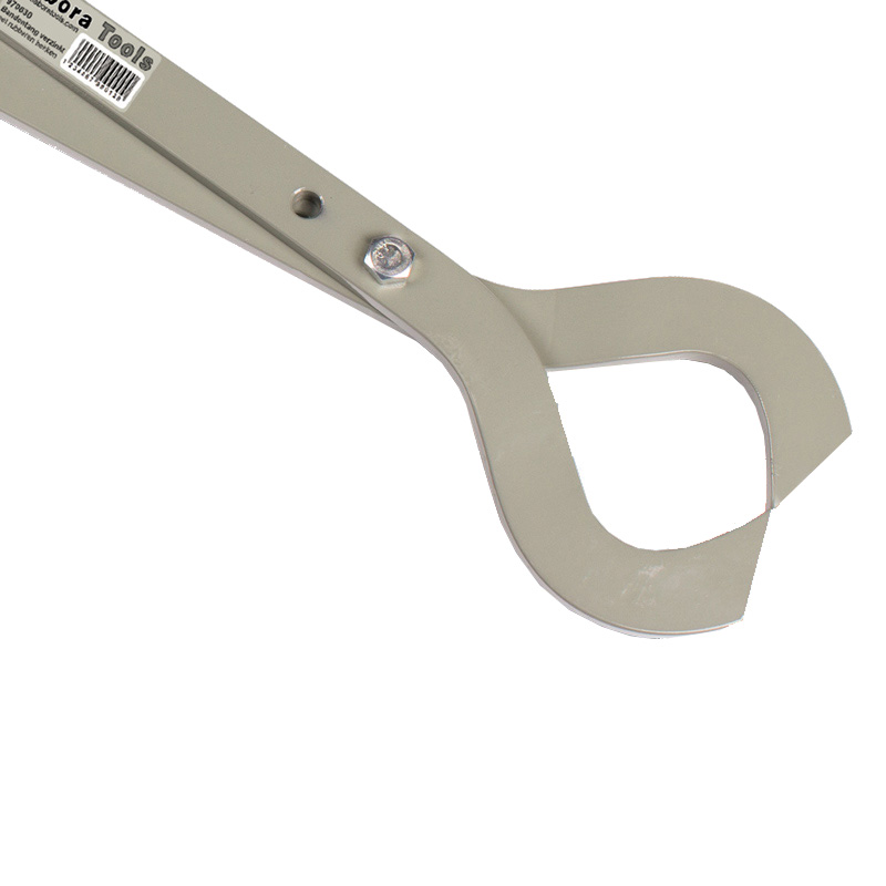 Trottoirbandtang of bandentang met een totale lengte van 75 cm, gemaakt van blauw gelakt staal, verstelbaar in twee standen en voorzien van een brede bek met scherpe gesmede punten, merk De Wit.