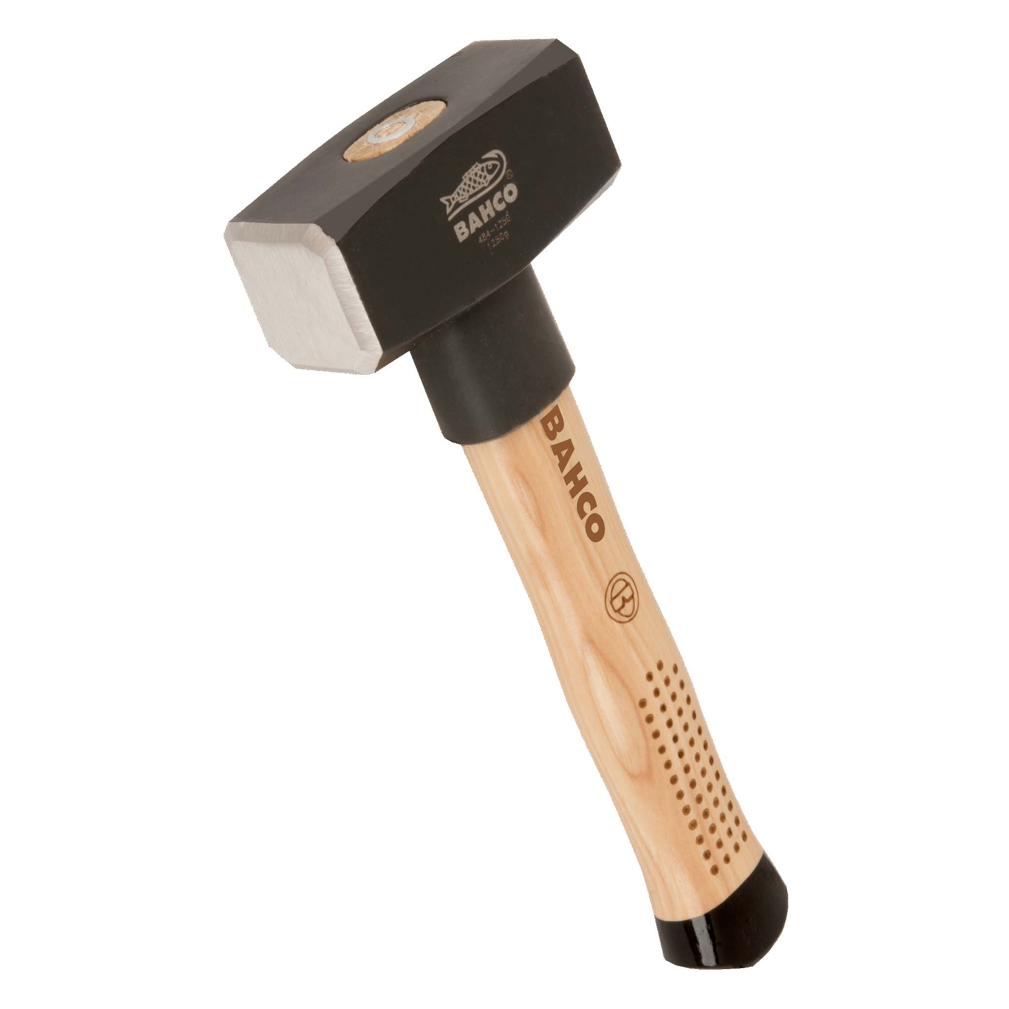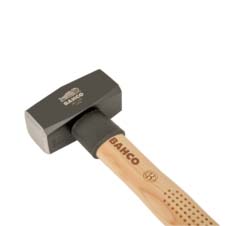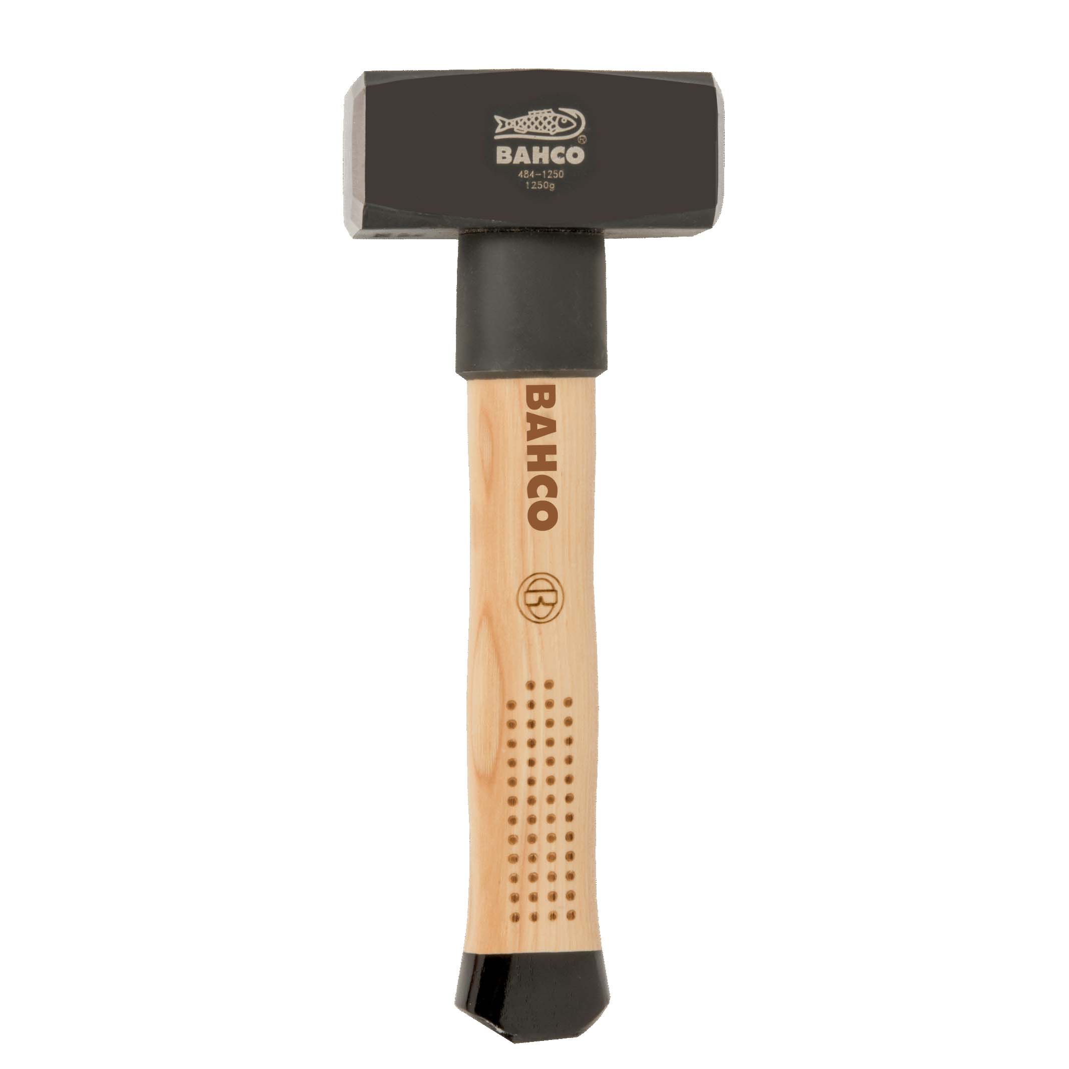 Vuisthamer of moker met een gewicht van 1,5 kilo, voorzien van hickory houten steel van 28 cm en anti sliphandvat, merk Bahco. De steel is voorzien van een steelbescherming. De hamerkop is gemaakt van gehard staal volgens DIN 6475 norm.