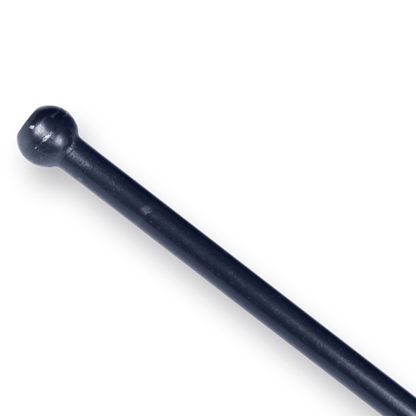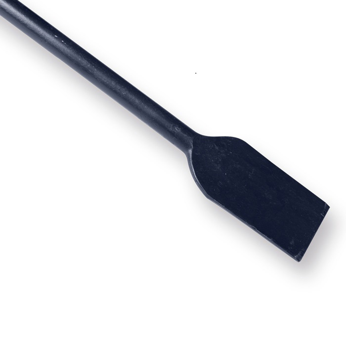 Wortelstootijzer of wortelbijl van gesmeed staal met een ronde steel. De totale lengte is 120 cm, voorzien van een knop bovenaan voor een goede houvast en een grote gesmede platte beitel met een afmeting van 10 cm breed en 18 cm hoog, merk De Wit. Ideaal voor het doorsteken van wortels.