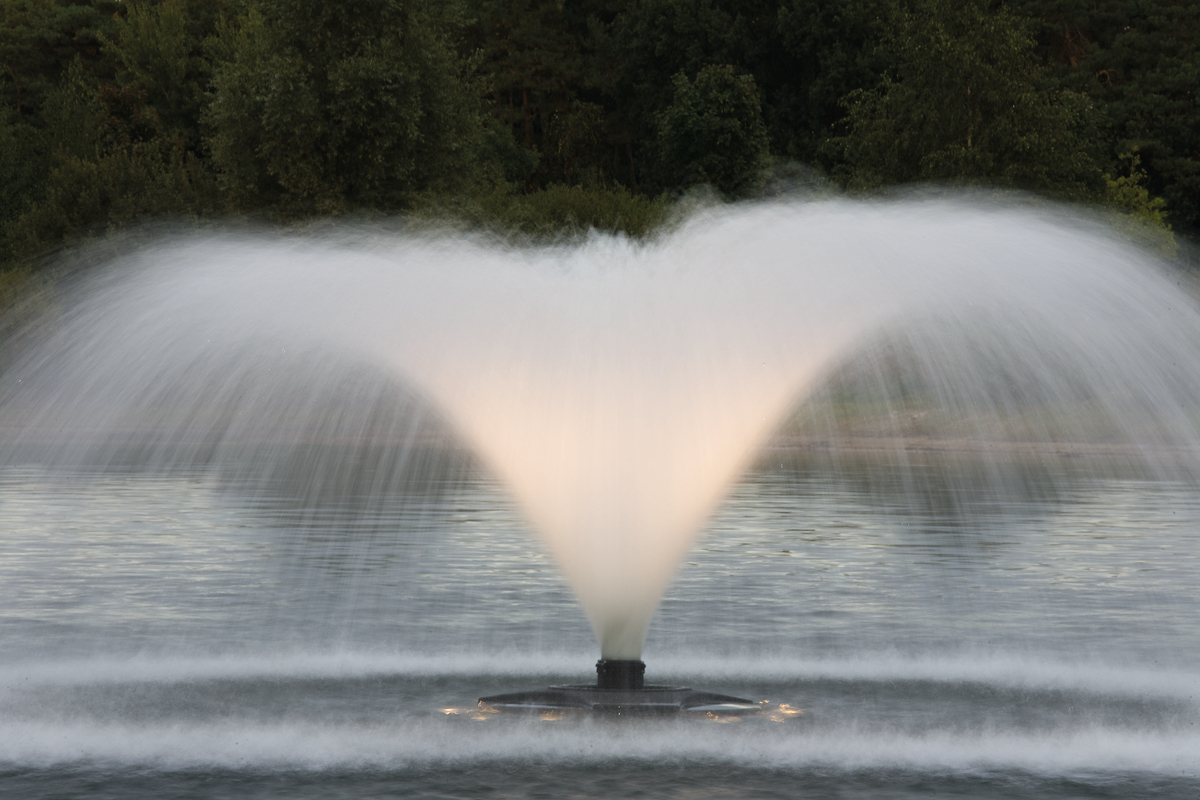– Drijvende vijverbeluchter en fonteinaggregaat gecombineerd