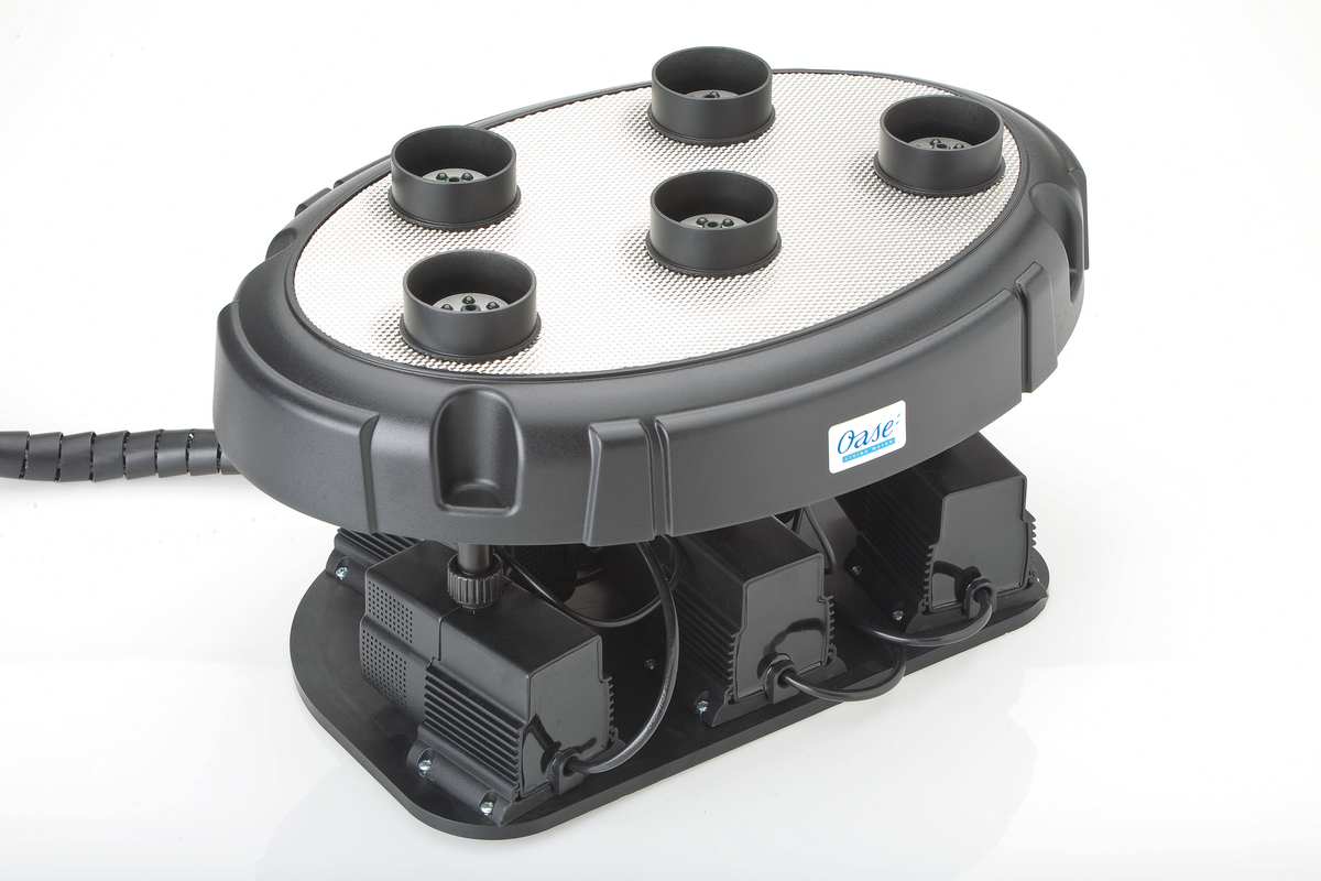 De OASE Water Quintet is een hoogwaardige fonteininstallatie met vijf variërende spuitkoppen en sfeervolle LED-verlichting.