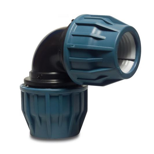 Jason Knie 90° PP 16mm knel 16bar zwart/blauw DVGW/KIWA/WRAS Code: AC02