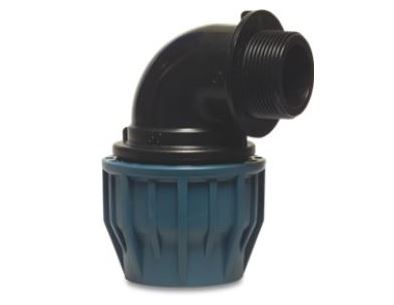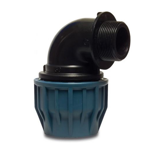 Jason Knie 90° PP 16mm x½' knel x buitendraad 16bar zwart/blauw DVGW/KIWA/WRAS Code: AC02'