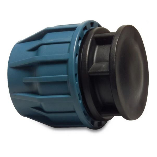 Jason Eindkap PP 16 mm knel 16bar zwart/blauw DVGW/KIWA/WRAS Code: AC02